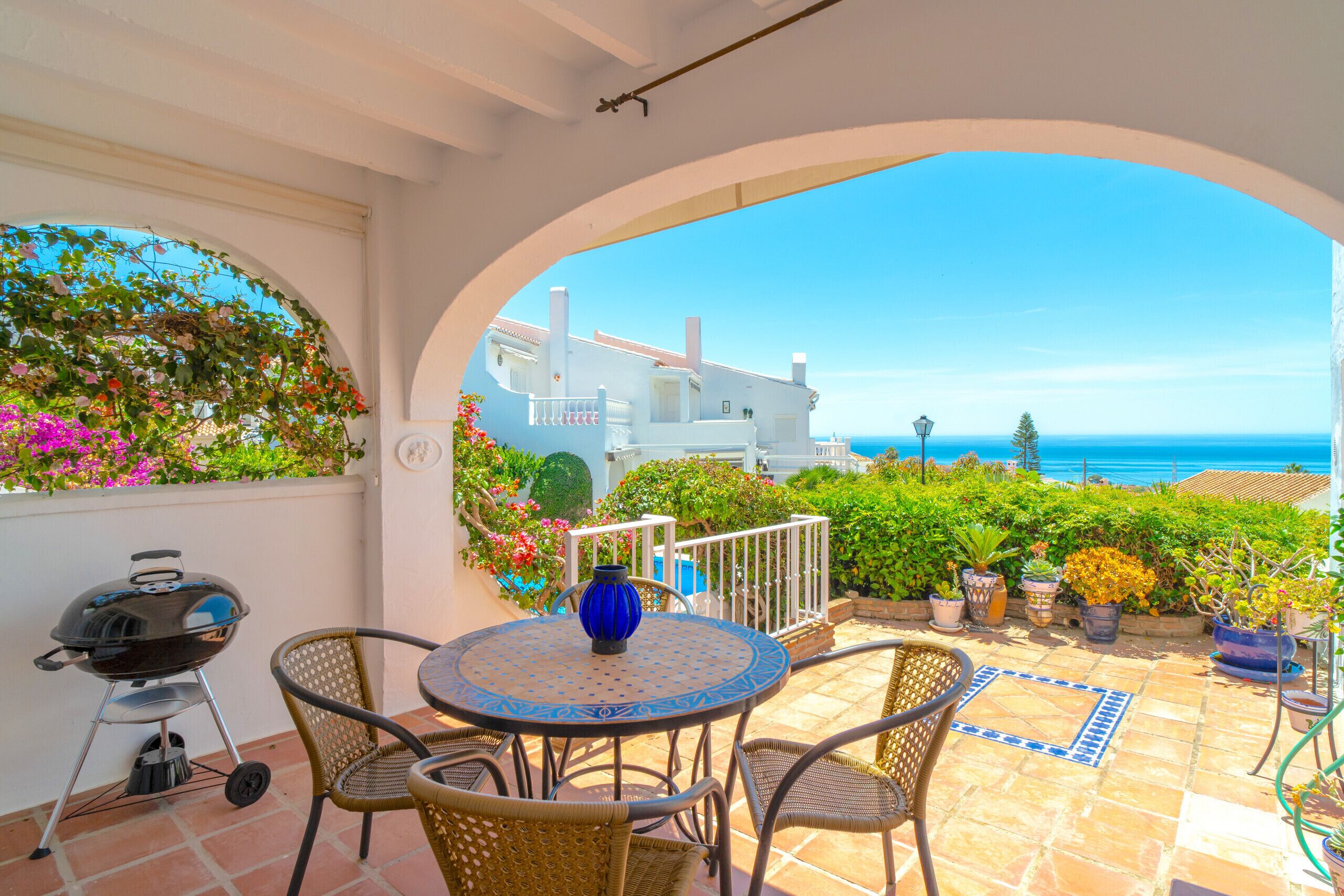 The porch has a dining table and comfortable chairs, perfect for dining al fresco while enjoying the views. The terraces include sun loungers to enjoy the Andalusian sun. The pool area invites relaxation and refreshment on warm days, and is complemented by a barbecue area for everyone's enjoyment.