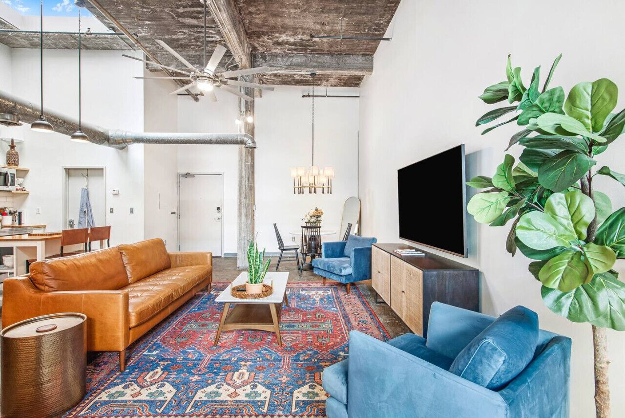 Hallelujah—you’ve found the best-located and -decorated rental home in Atlanta! This former factory (a testament to the power of great renovation) boasts soaring windows, two bedrooms, one bath, laundry, and a chef’s kitchen. There’s also a heavenly workspace and communal gym if you worship at the altar of physical fitness. The famous Atlanta BeltLine running, walking, and cycling trail is just steps from your door and will lead you to divine restaurants, shops, and watering holes. Praise be!