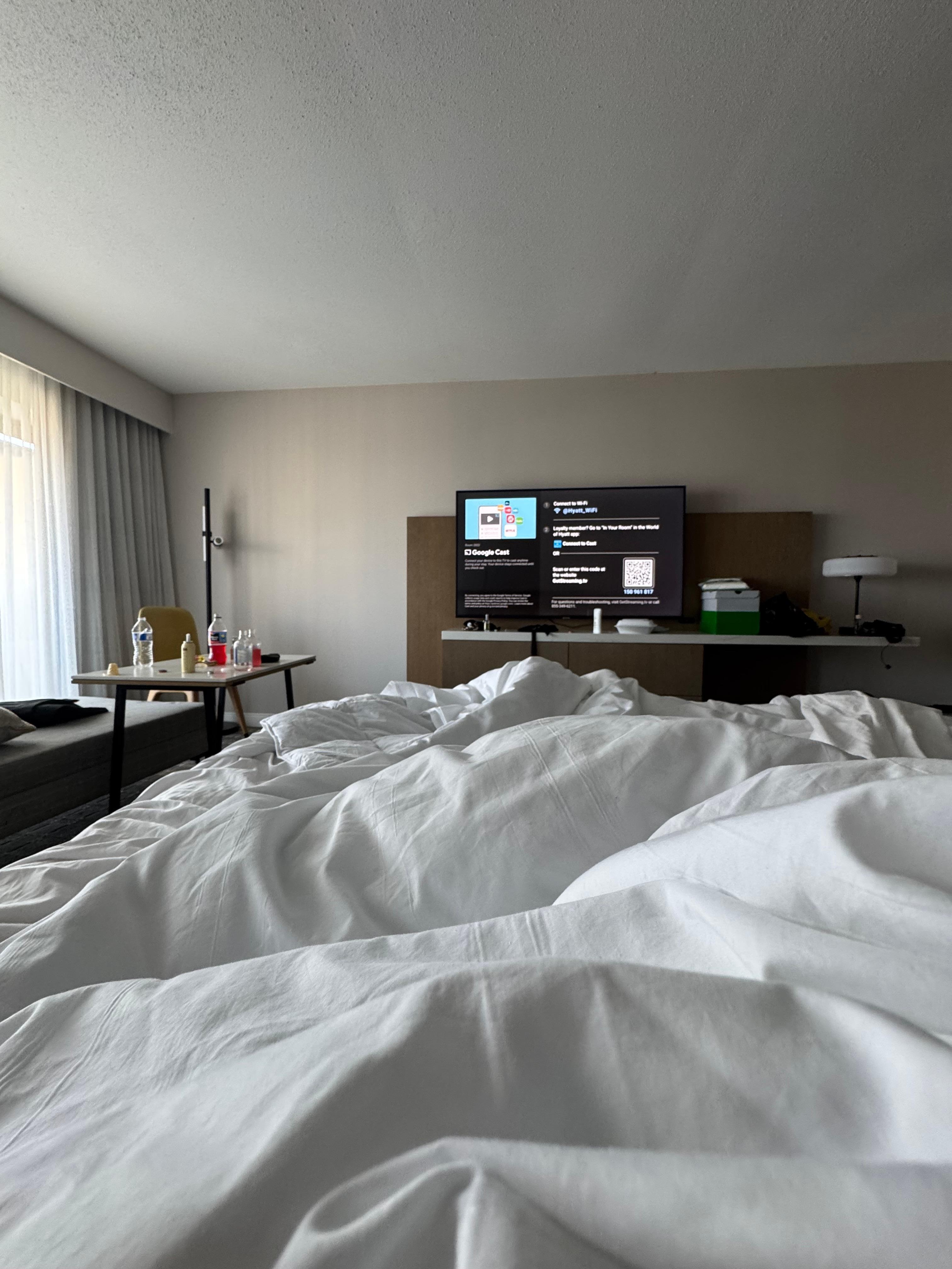 Hyatt Regency Atlanta Downtown offers 1260 accommodations with iPod docking stations and safes. Beds feature down comforters. 42-inch flat-screen televisions come with premium cable channels and pay movies. Refrigerators and coffee/tea makers are provided. Bathrooms include shower/tub combinations, designer toiletries, complimentary toiletries, and hair dryers.