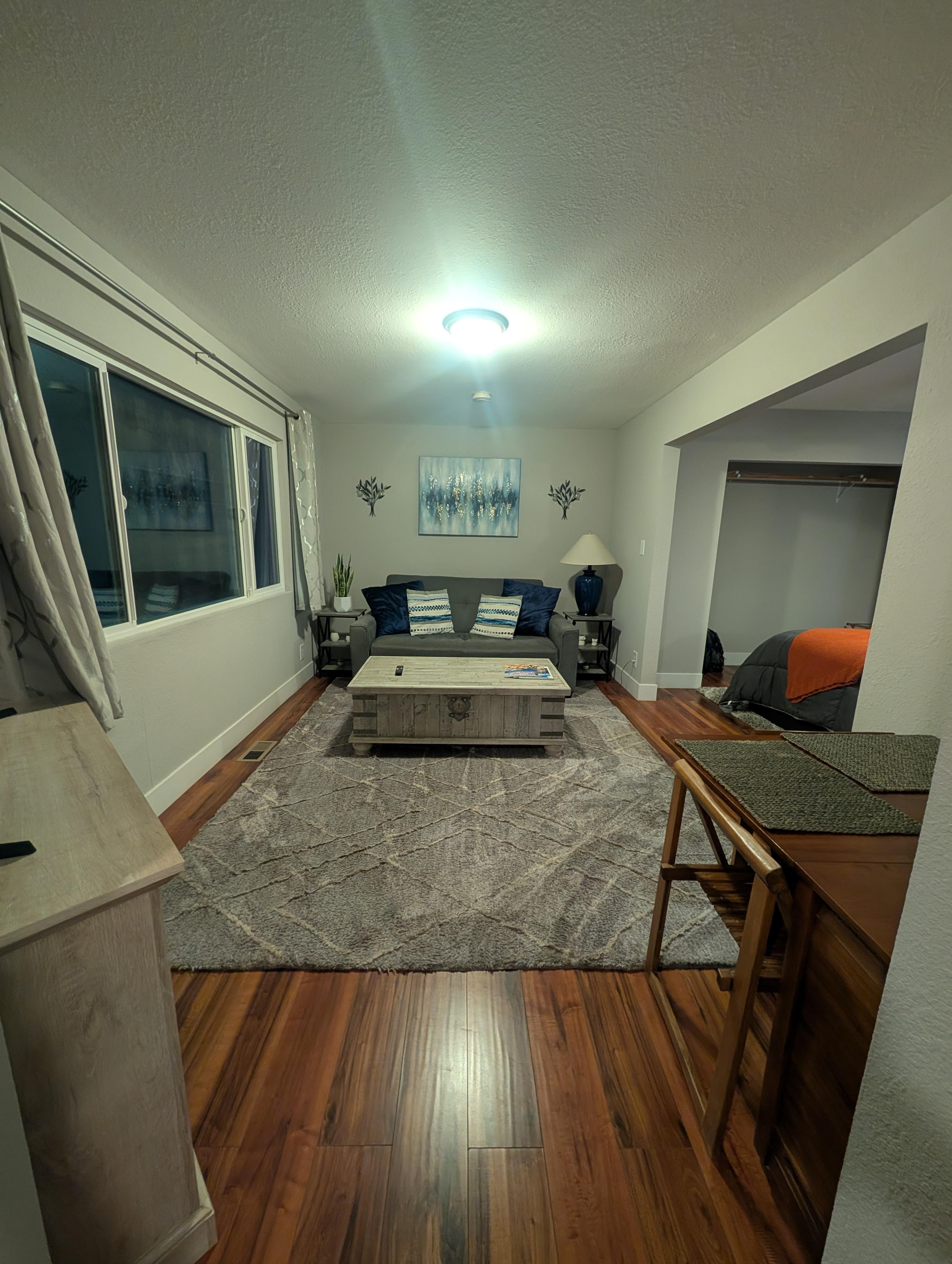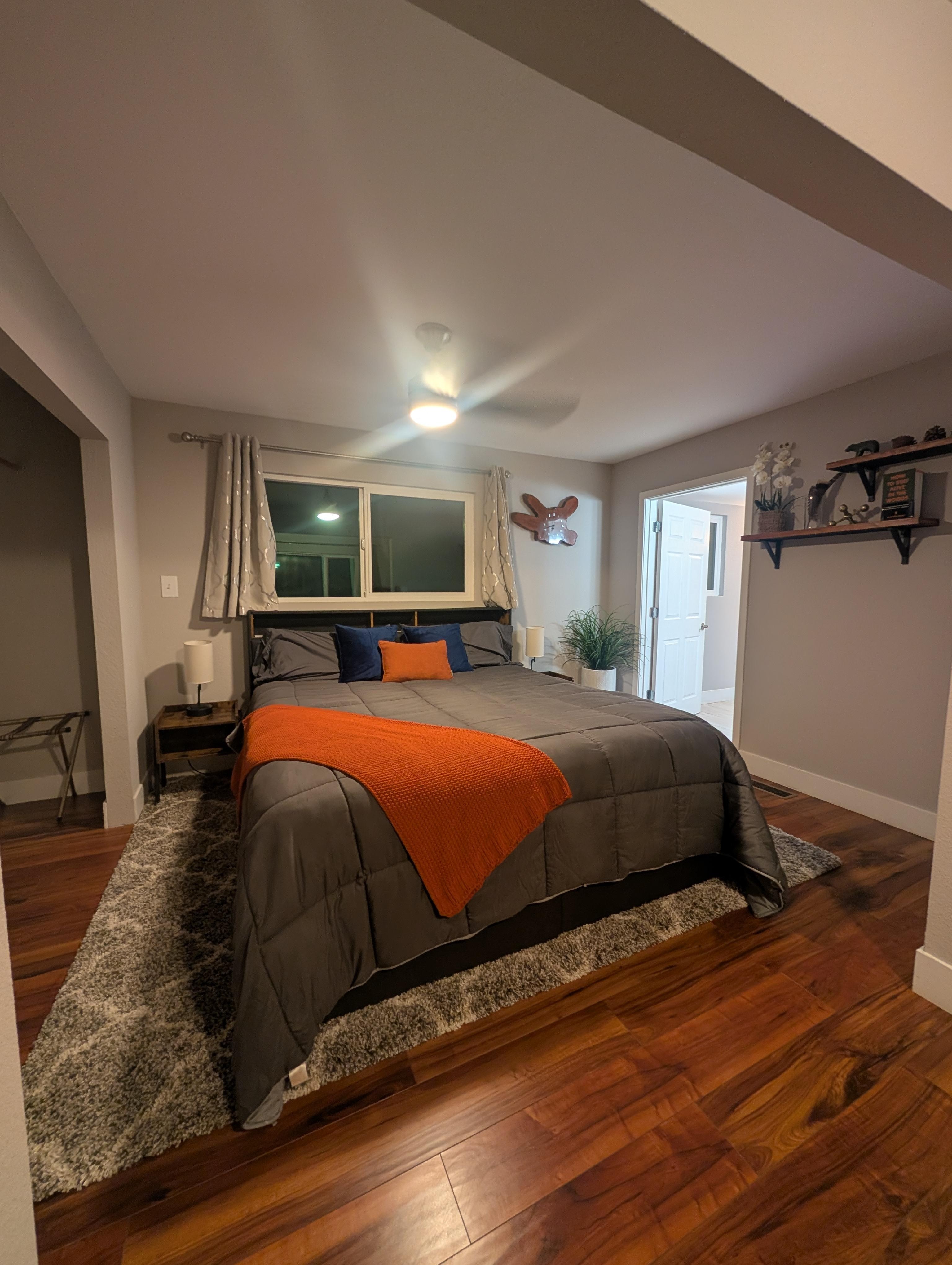 The house sits off a quiet country road on 17-acres in the Sierra Nevada Mountain Range bordering the Bear River. We are located 9 miles from Old Town Auburn and 1 hour from Lake Tahoe. The suite is approximately 600 sq ft and attached to the main house with its own private entrance. It’s perfect for a single or couple, and comfortably sleeps up to 4 adults. It is suitable for long term stays.