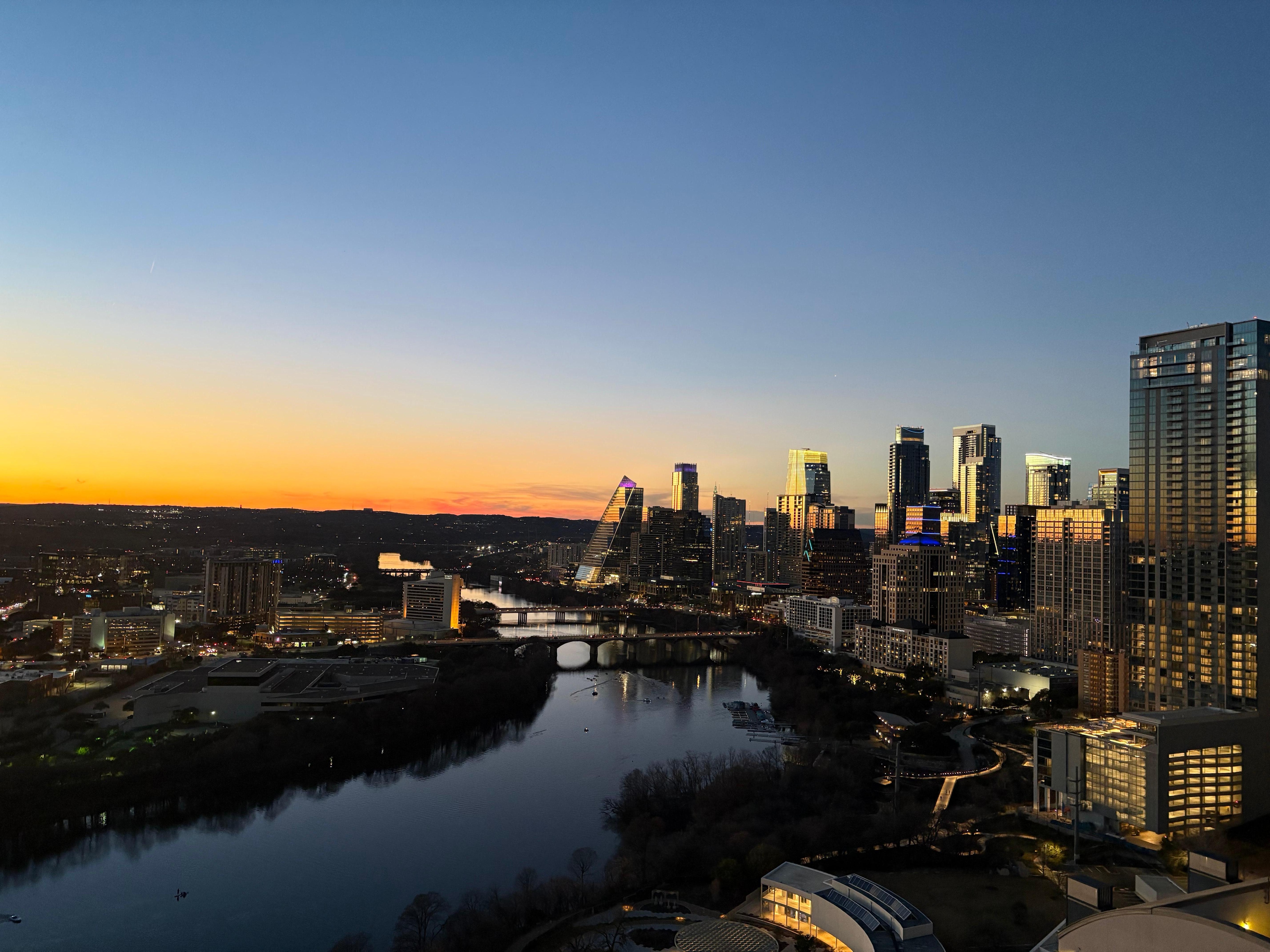 Rise above in this luxe, penthouse-level, 32nd-floor, dual-suite condo right by Rainey Street, Butler Trail, ATX Boat Rental, and the Congress Avenue (Bat) Bridge, and just two miles from the UT Austin campus. Unlike other condos in the building, you can walk to the pool (one flight up) from this one and avoid the elevator. Big plus!