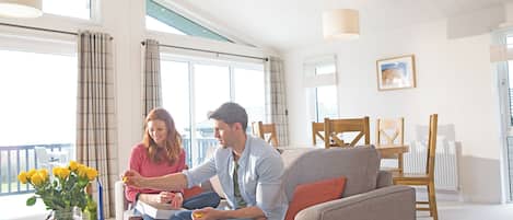 Luxurious and spacious lodge with one king-size double and one twin, both with spacious, contemporary styled en suite. open-plan living space with stunning lounge, spacious dining area and stylish kitchen. French doors opening on to decking area with outdoor hot tub. Ideal for luxury breaks to celebrate with family or friends.. Hawkchurch Resort and Spa is part of our Evermore Lodge Holidays Collection, set in a breathtaking, tree studded haven of natural beauty on the Dorset-Devon border. Boasting magnificent views over the Axe Valley, this enchanting retreat offers a relaxing base to rediscover your inner peace. Discover the stunning facilities of the luxurious Ezina Spa, unwind in harmony with nature, or explore the delights of South Devon, the choice is entirely yours.