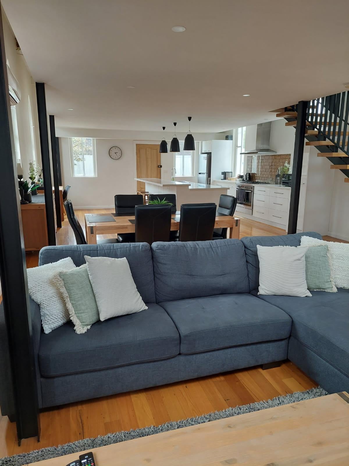 Downstairs boasts a modern kitchen with everything you need to cook including a pod coffee machine with coffee included, microwave, and a dining area to seat 6 people.