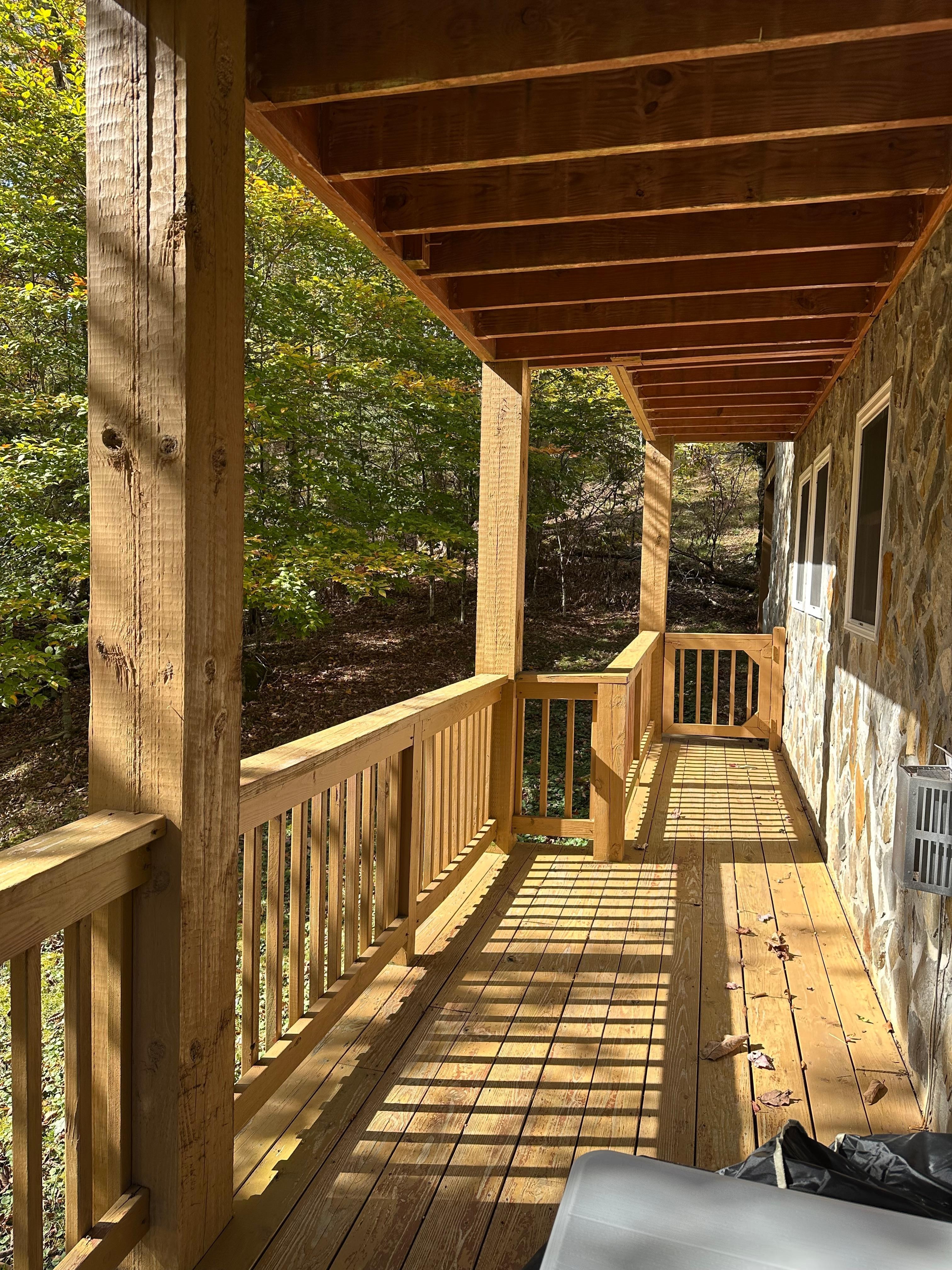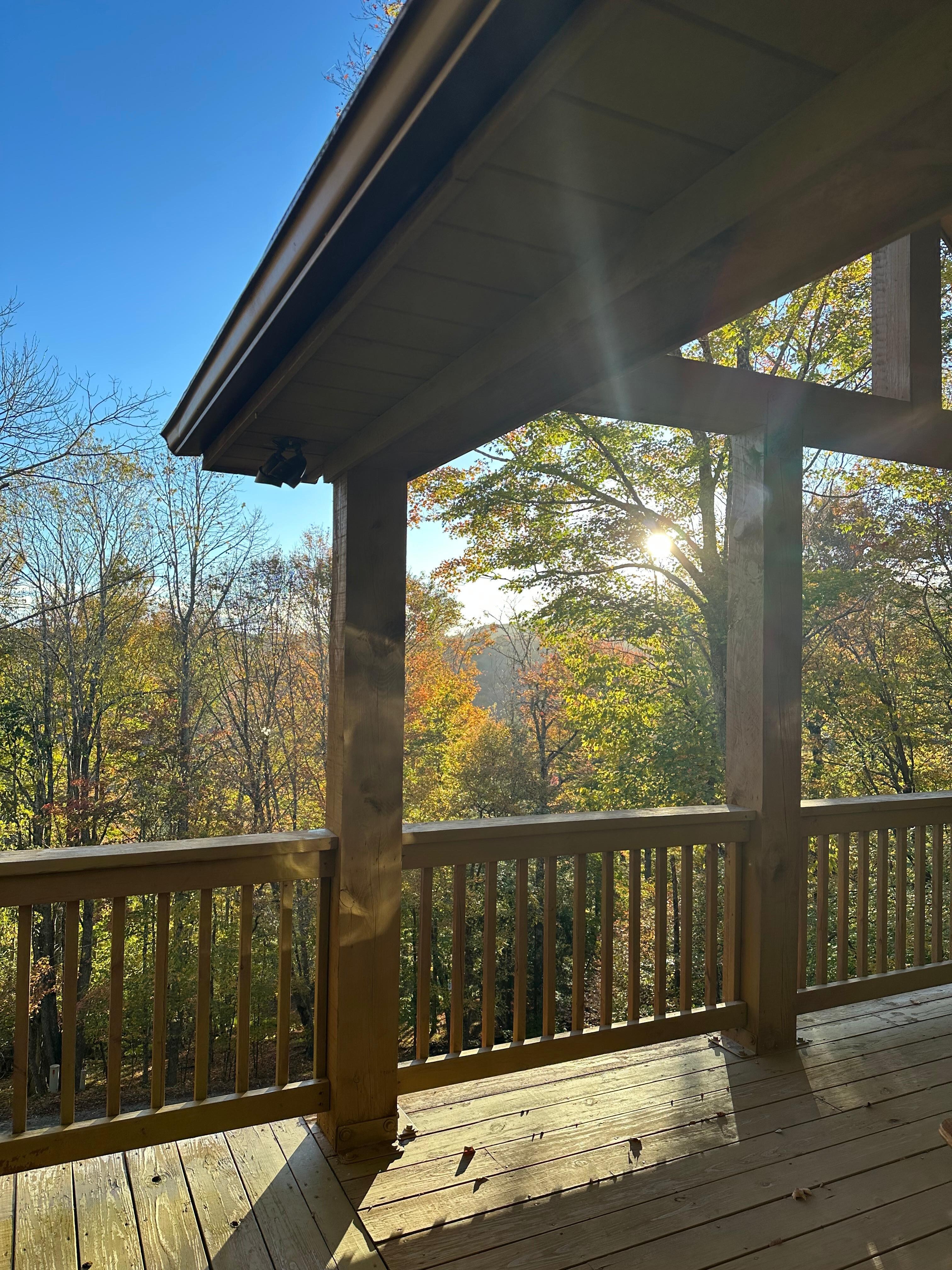 The cabin was very clean and cozy. We thoroughly enjoyed our stay. The wrap around porches provide optimal space for enjoying the beauty of nature in the area. We also enjoyed watching the deer walking close by. The cabin was well stocked and comfortable to enjoy a movie beside the fireplace.