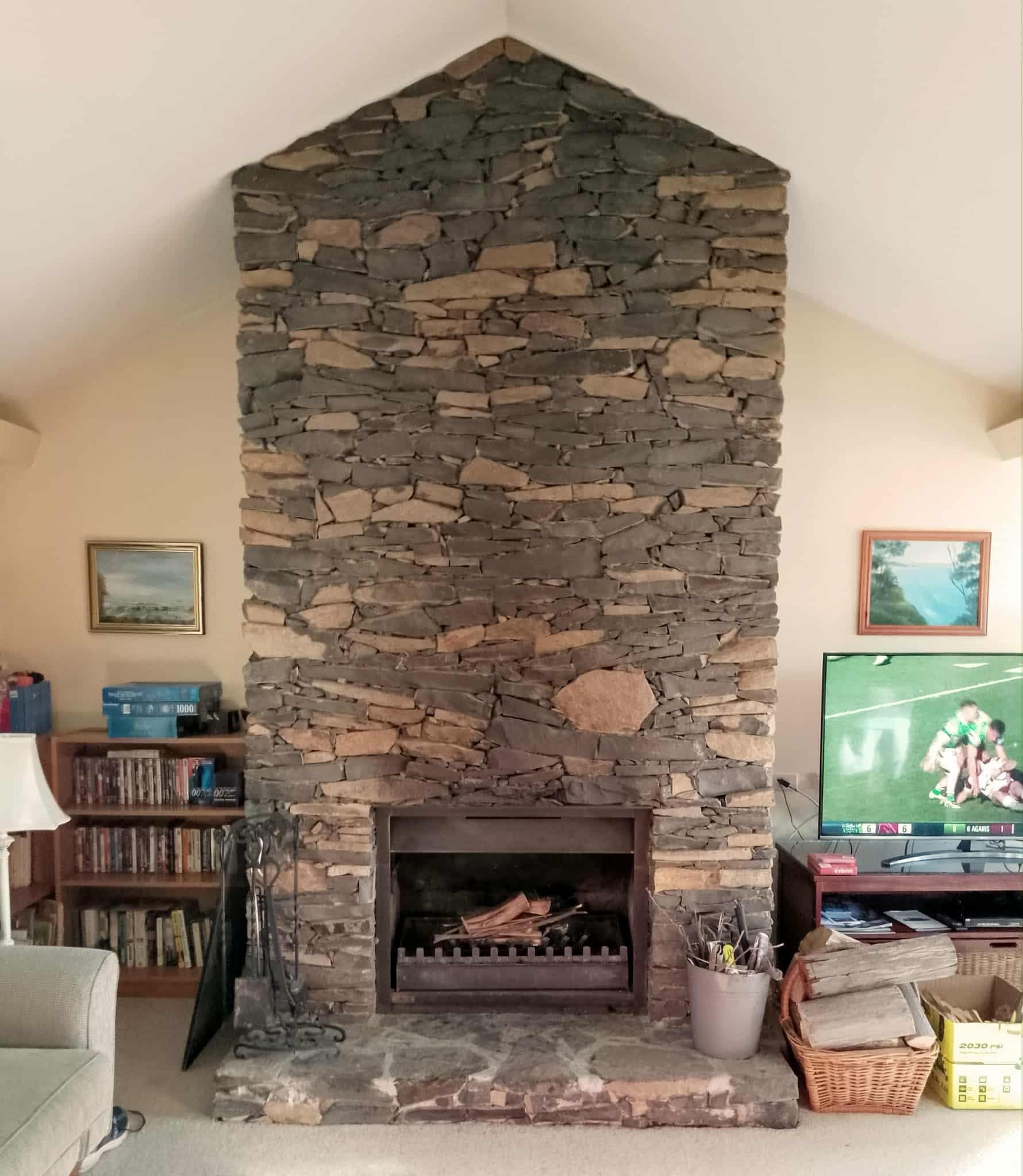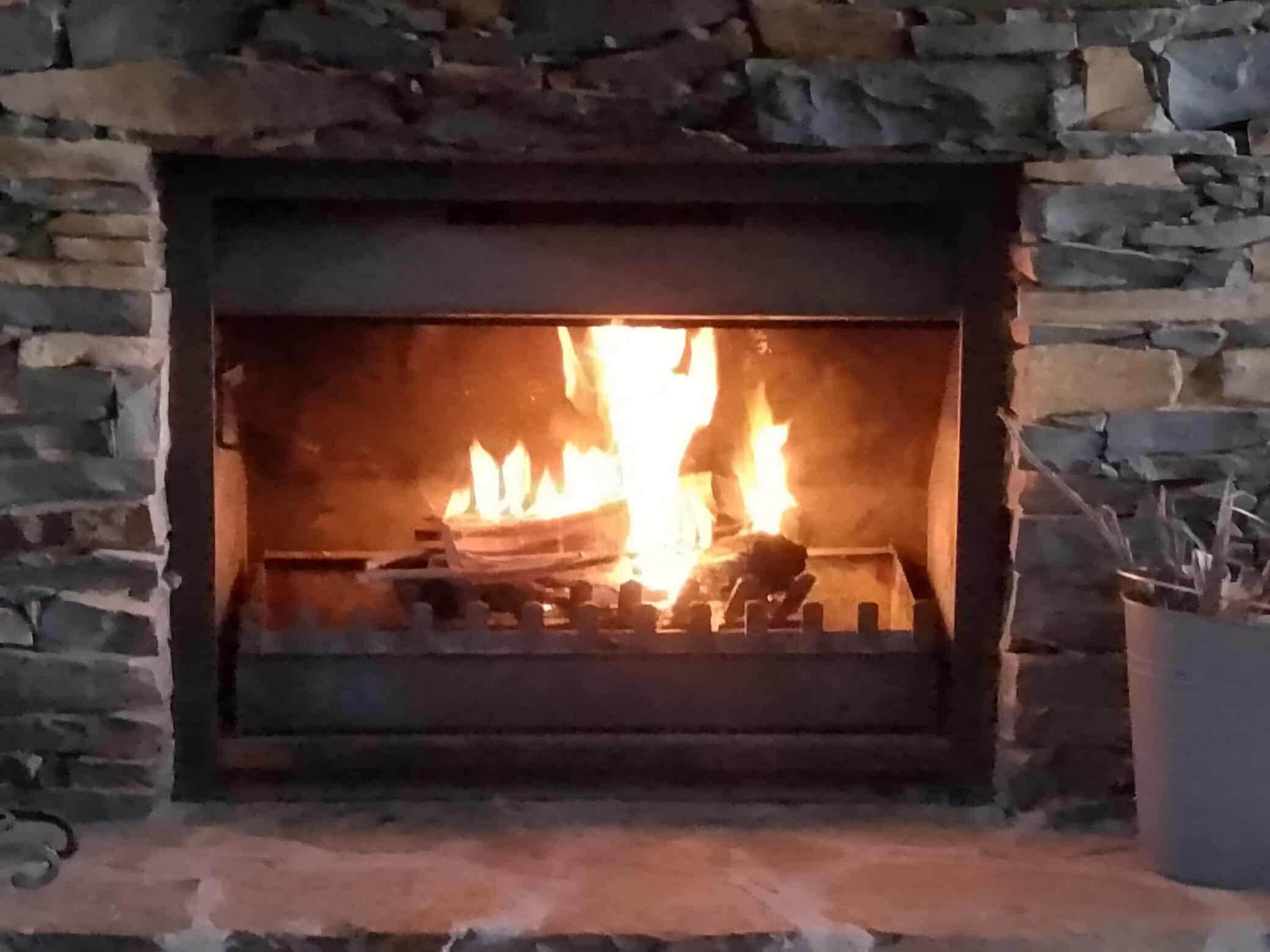 Real stone open fireplace