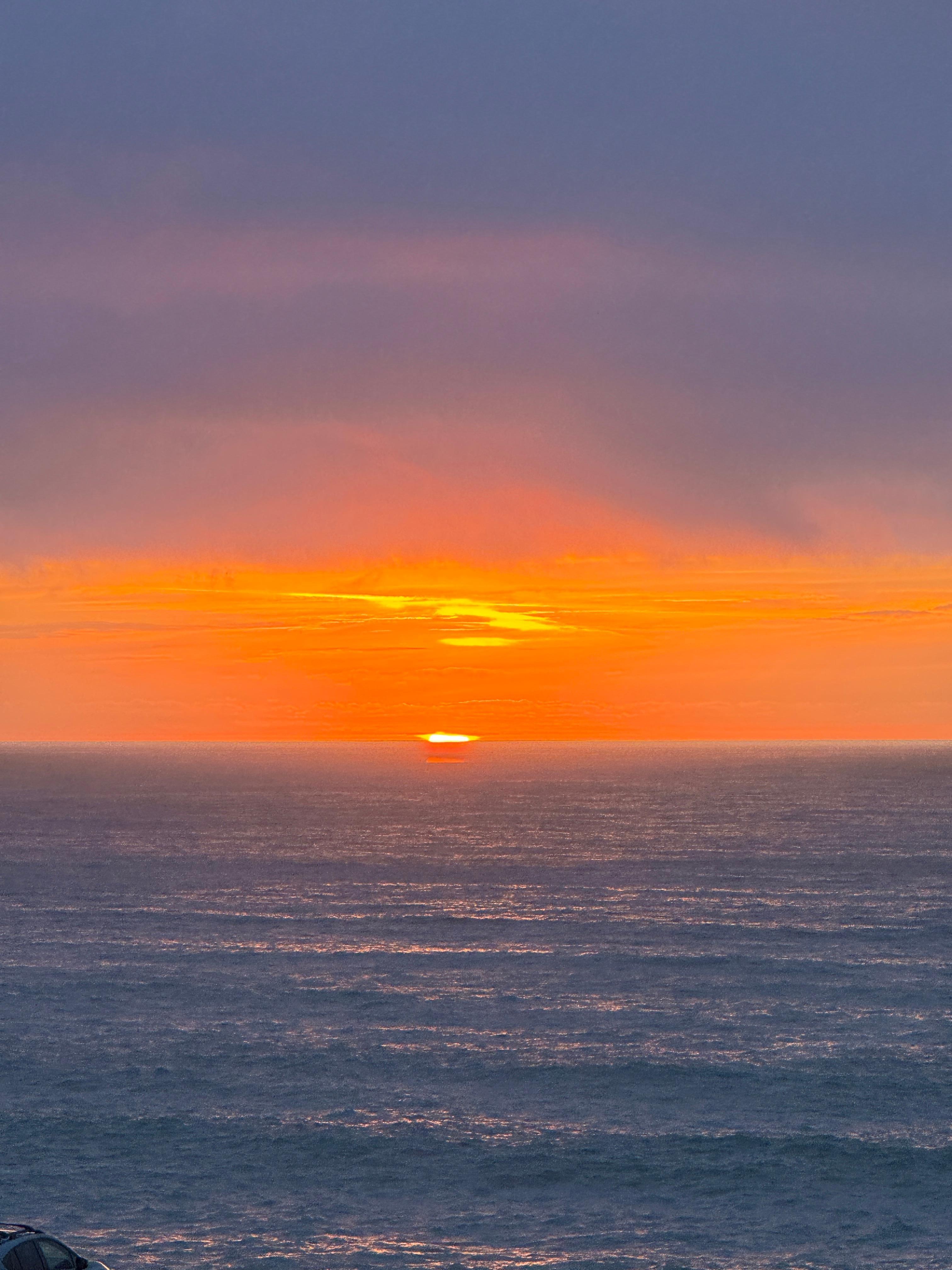 Upper small deck and larger deck with cozy seating area with gas firepit and hot tub looking out to the ocean.