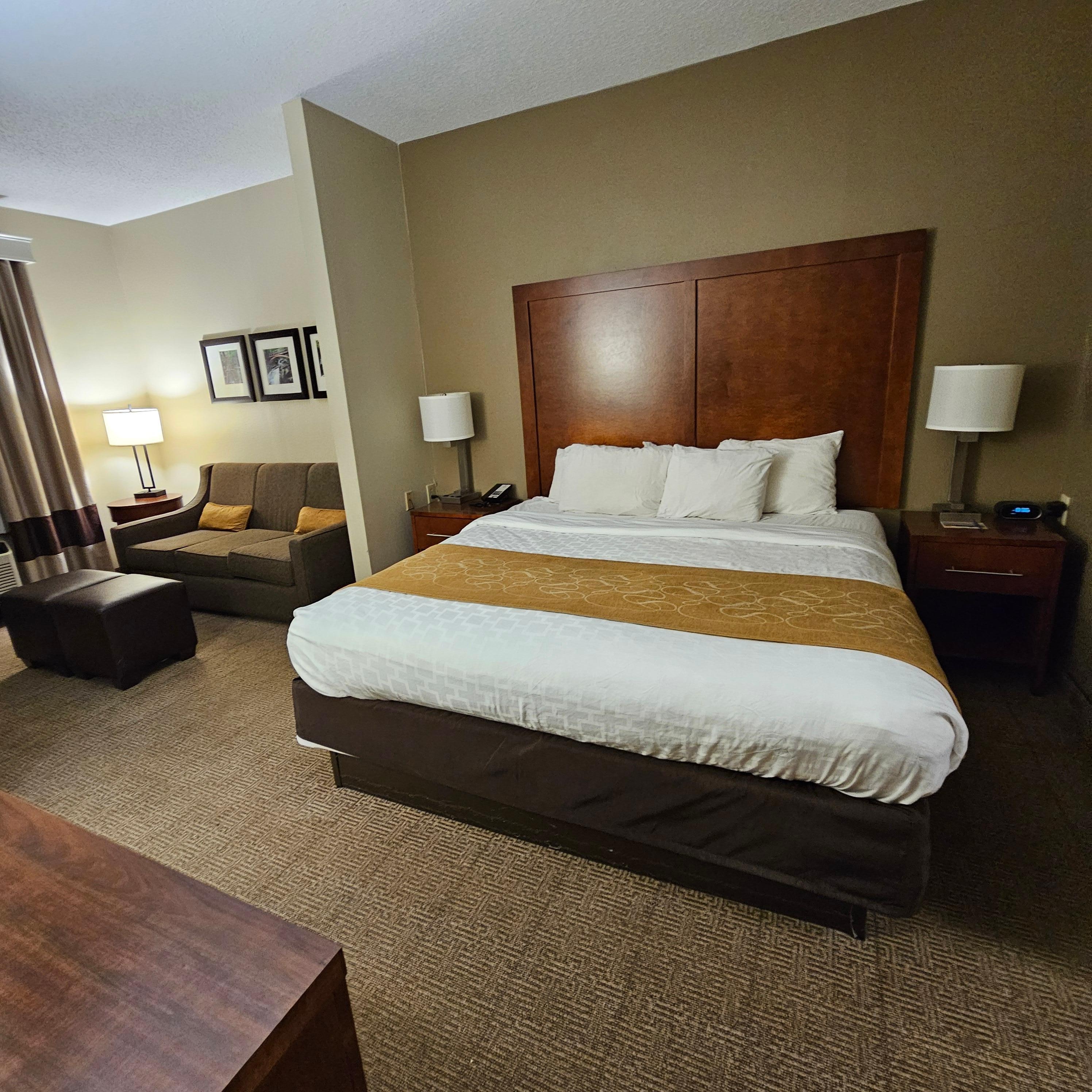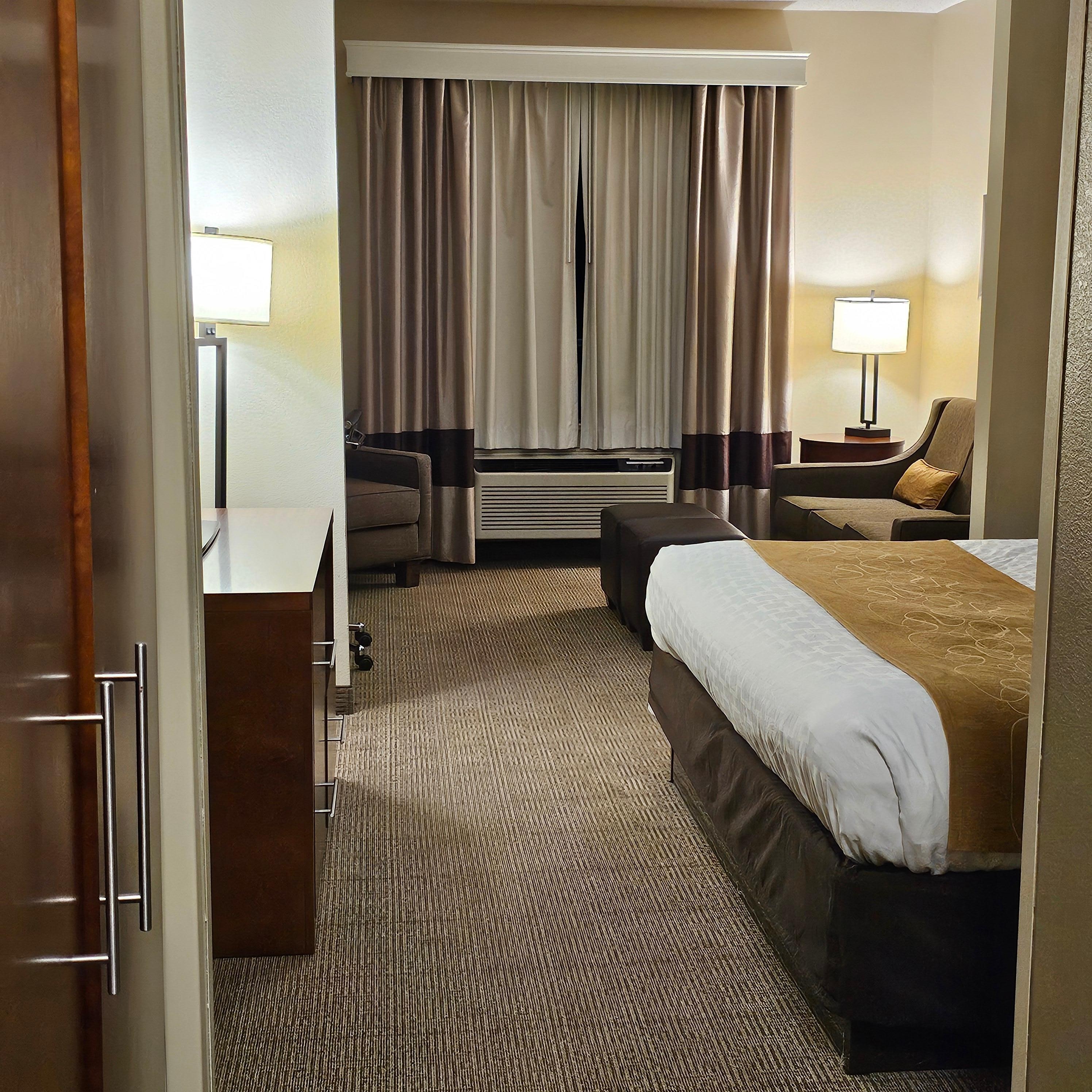 That said, there were a few drawbacks. My room had a noticeable smoke odor when I first entered, despite the property’s no-smoking policy—perhaps lingering in the carpet. The ironing board and curtains had some stains, and the in-room coffee setup only included decaf, with disposable trays that didn’t quite fit the machine.