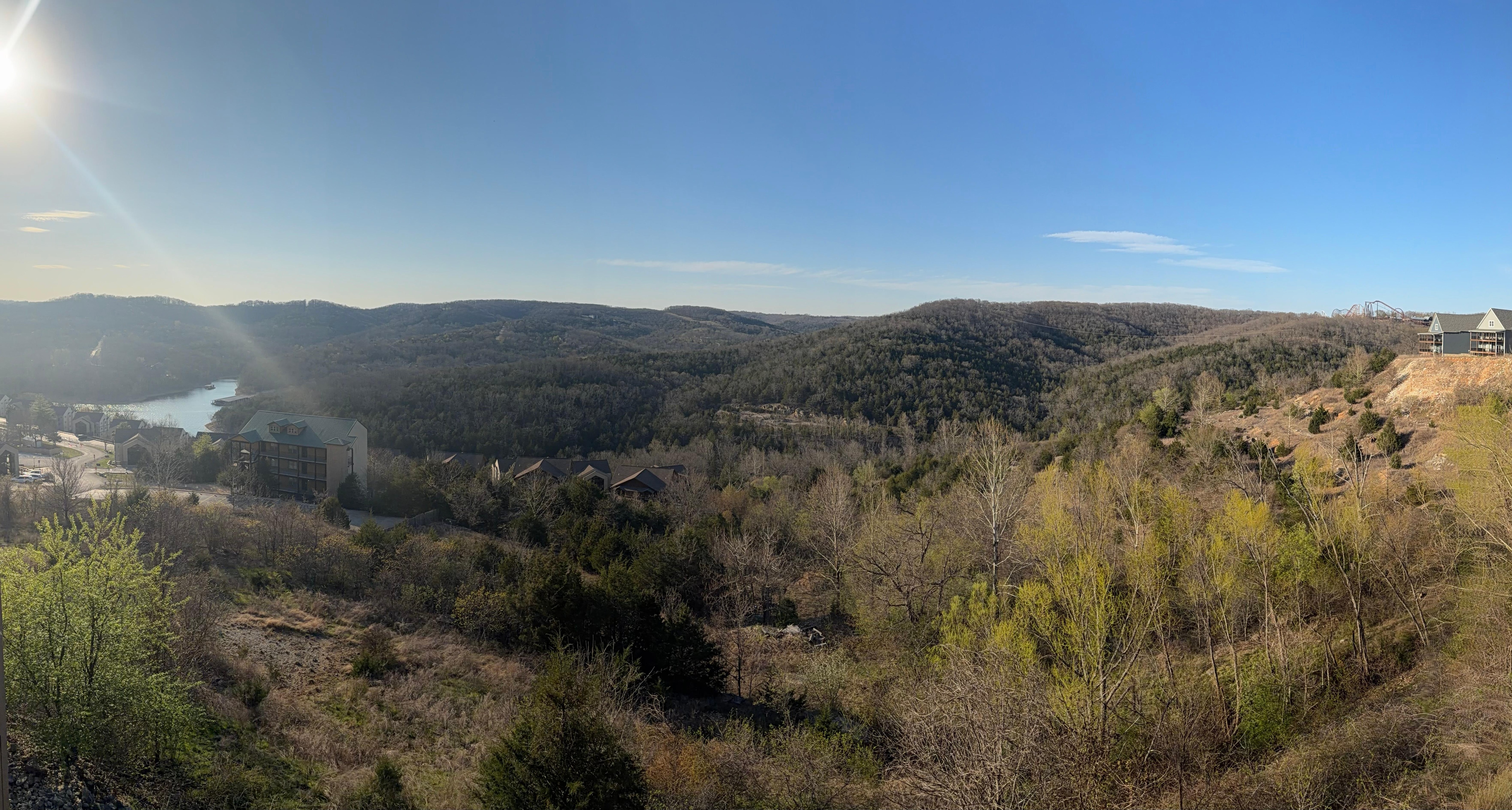 This 2 bed and 2 bath condo is perfect for your family of up to 8. wanting a great vacation home next to Americas most loved theme park! Enjoy your private top floor balcony while listening to boats on the water, the train whistles, and the roller coaster sounds from Silver Dollar City. The 180-degree views of Table Rock Lake, SDC, and Ozark mountains are just one of the amazing things about this property. The grilling area, fire pit, and outdoor pool (open Memorial Day through Labor Day) with scenic views, make this one of our favorite places to hang out. A fully functional kitchen and necessary cooking supplies. So many updates to list but a few items are: carpeting replaced in the fall of 2022, all the hardwood flooring replaced in the Spring of 2023, and new sleeper sofa, sitting chair, and the addition of a small desk in the winter of 2023. We have tried to think of everything you might need while on vacation, and have it at your disposal.