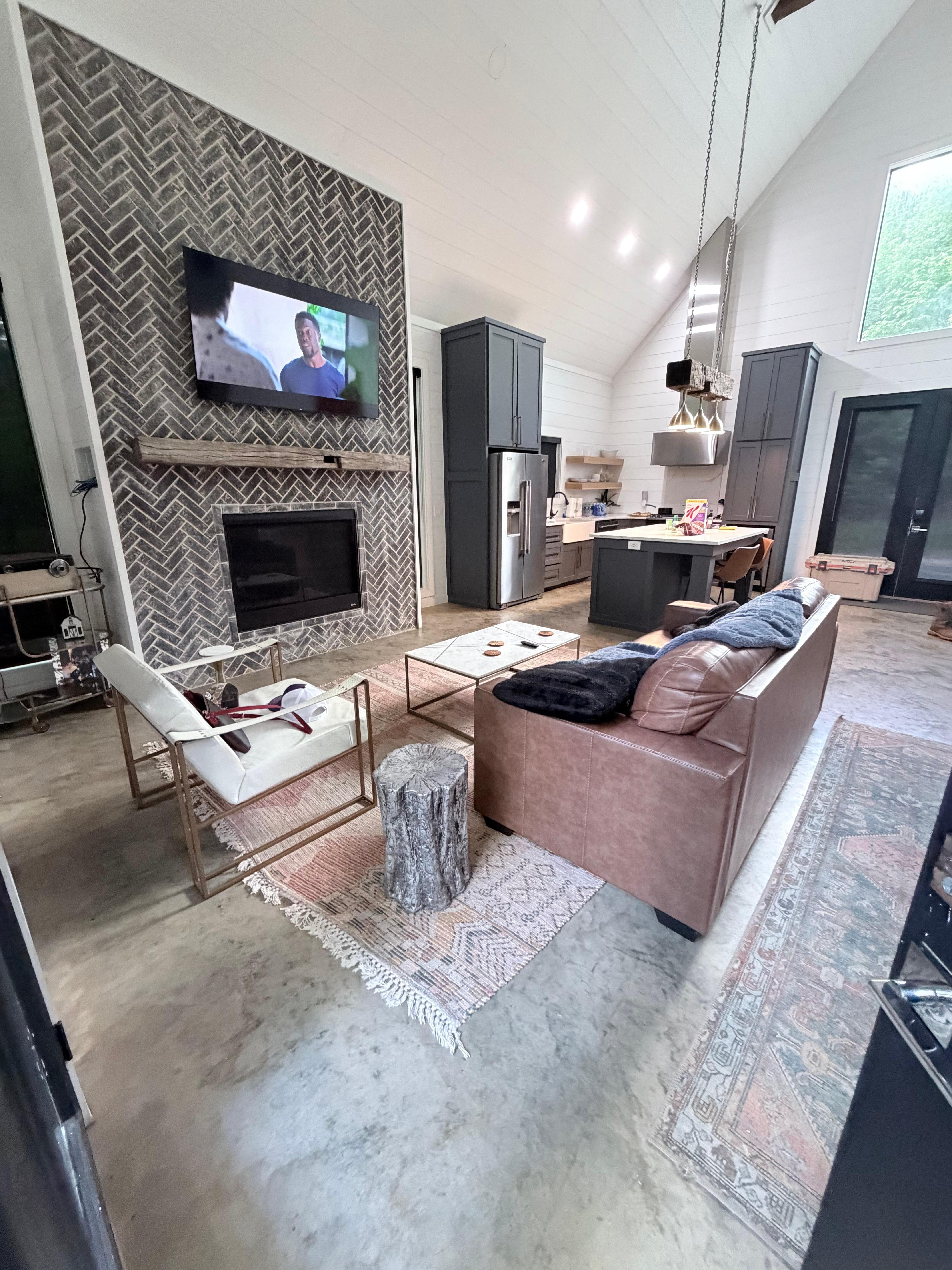 Open-concept living space with a warm, rustic-chic vibe: