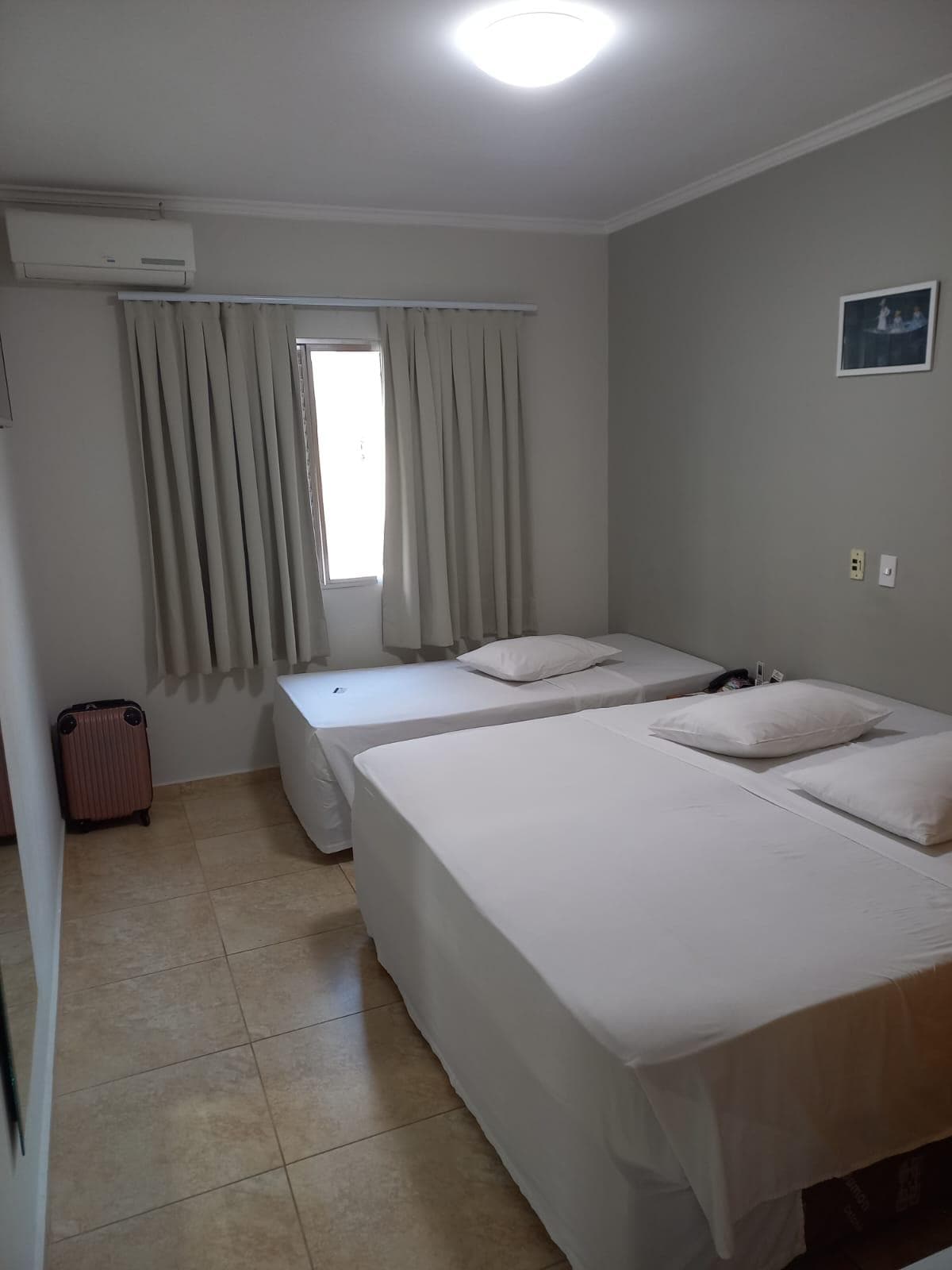 A estadia no hotel foi boa. Piscina coberta e café da manhã sāo ótimos. Porém o quarto nāo corresponde as fotos disponíveis no app. Quarto bem pequeno e banheiro também.