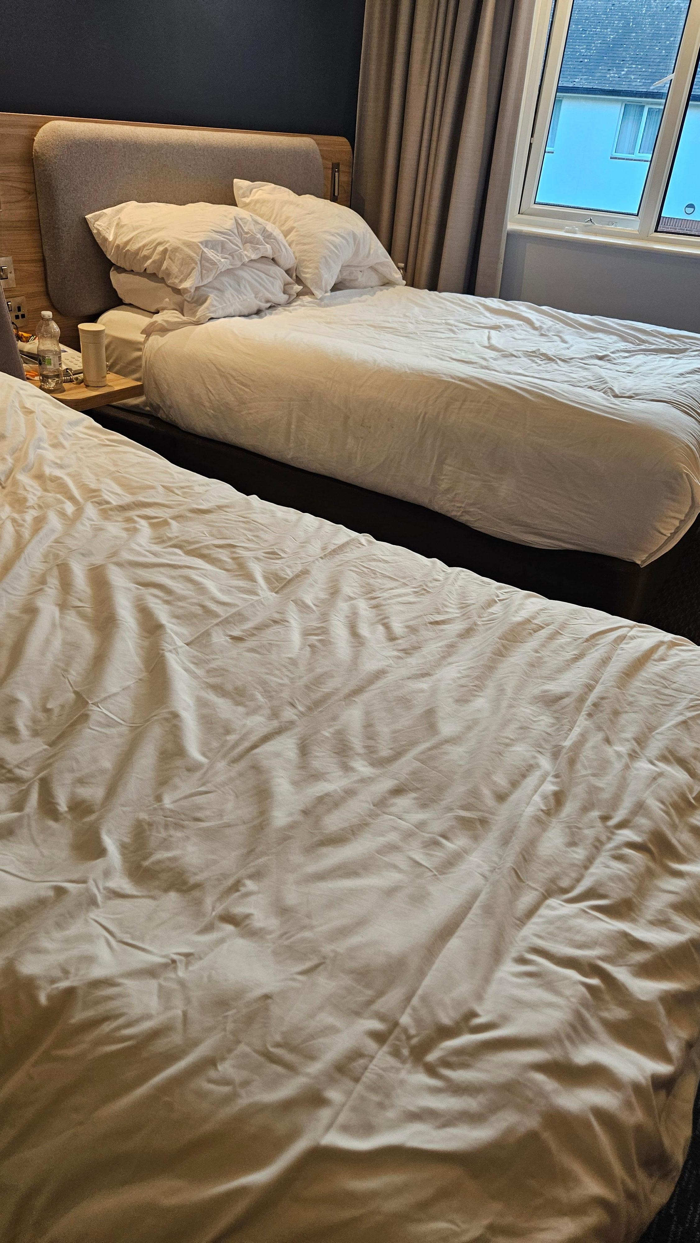 Pictures show how they made our bed on the last two days. First time i see this in my life. My toddler can do better than this.