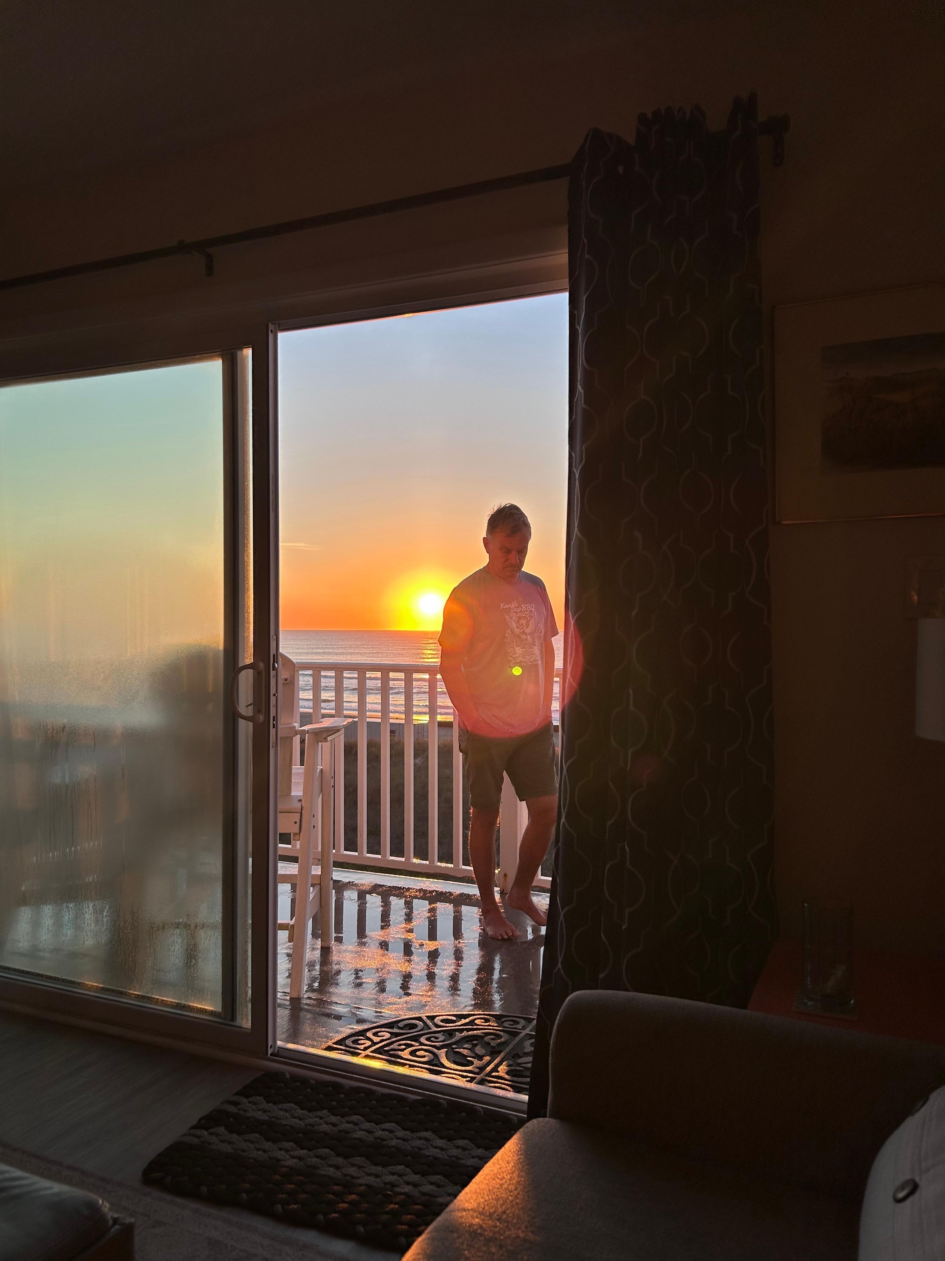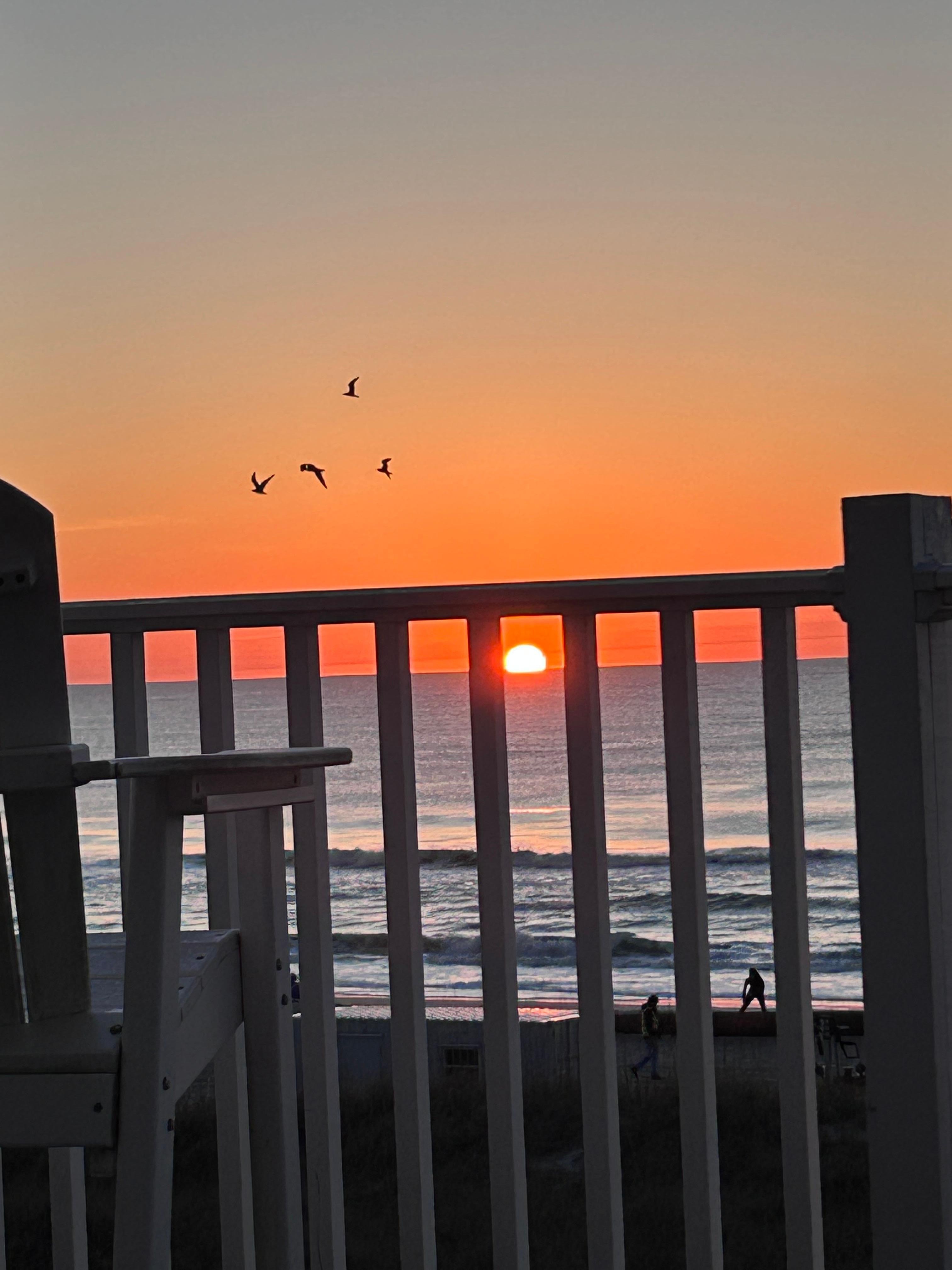 Rise from the comfy king bed as the view from the 3rd floor deck beckons. Drink your favorite morning beverage while watching spectacular sunrises, dolphins frolicking in the surf, birds diving at schools of fish running across the horizon from your perch on the spacious deck. Grab your things and take the short, private walk down to the most gorgeous beach on the Atlantic. Let the beach take you on soft sandy walks and find that perfect spot.