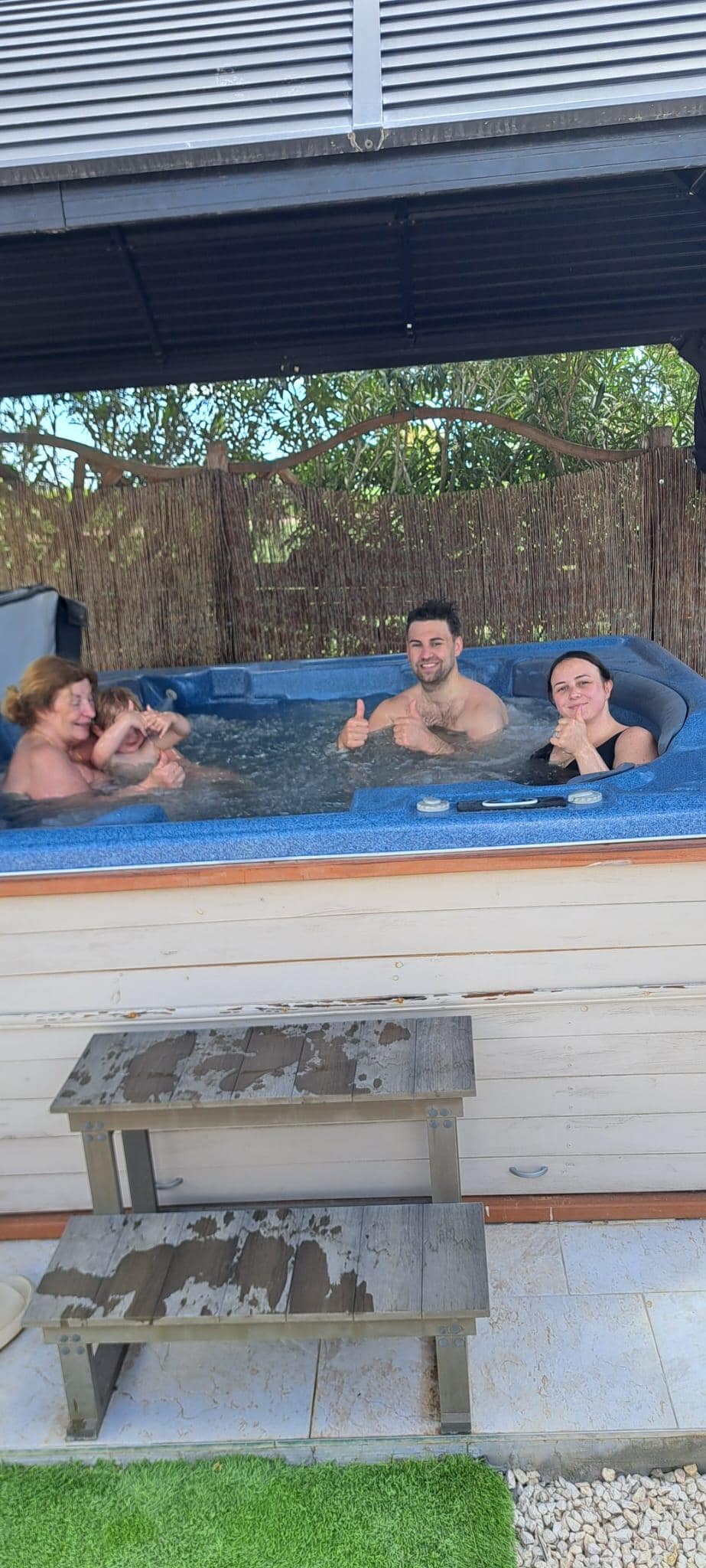All bedrooms are fully air-conditioned; three of them have a closet and are furnished with double beds. In the children's room you will find a cabin bed and a toddler bed. The cabin bed is also suitable for adults. A large ceiling fan in every room ensures a pleasant climate if you want to do without the air conditioning. Each room can be individually cooled.