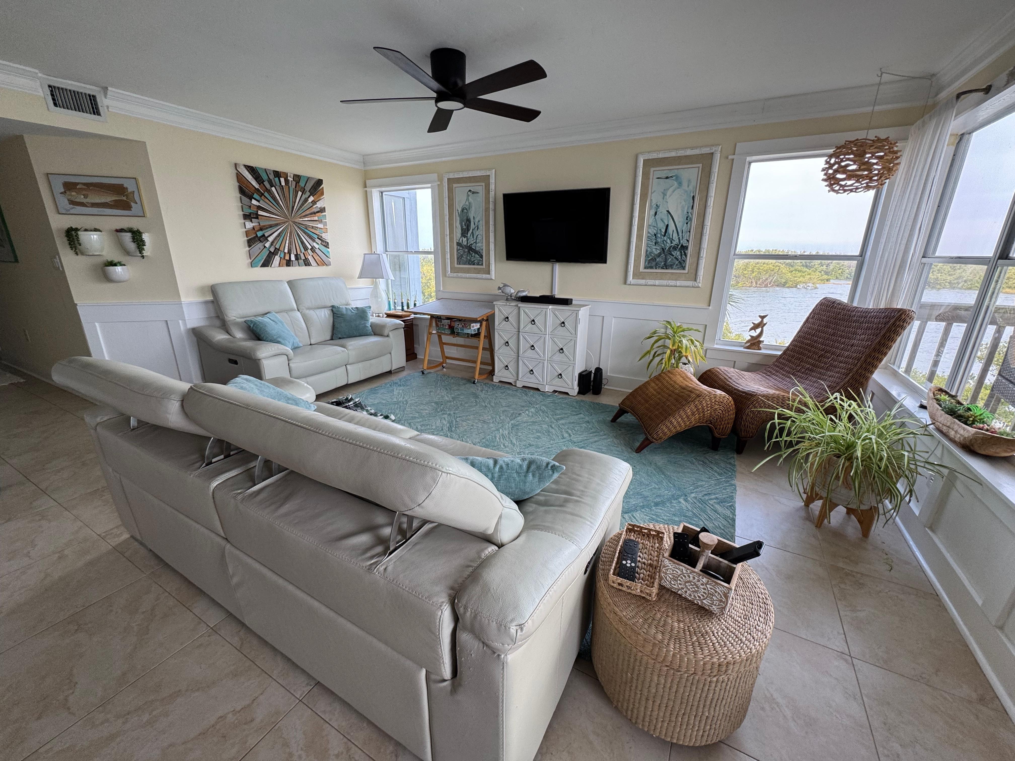 Welcome to Dolphins View, Unit 6C! This beautifully renovated 2-bedroom, 2-bathroom condo offers all the amenities you need for a comfortable "home away from home" experience in Cedar Key. Step into a bright, inviting living space that immediately captivates with stunning open-water views. You'll find comfort in a fully stocked kitchen and cozy furnishings, with plenty of opportunities for relaxation and fun.