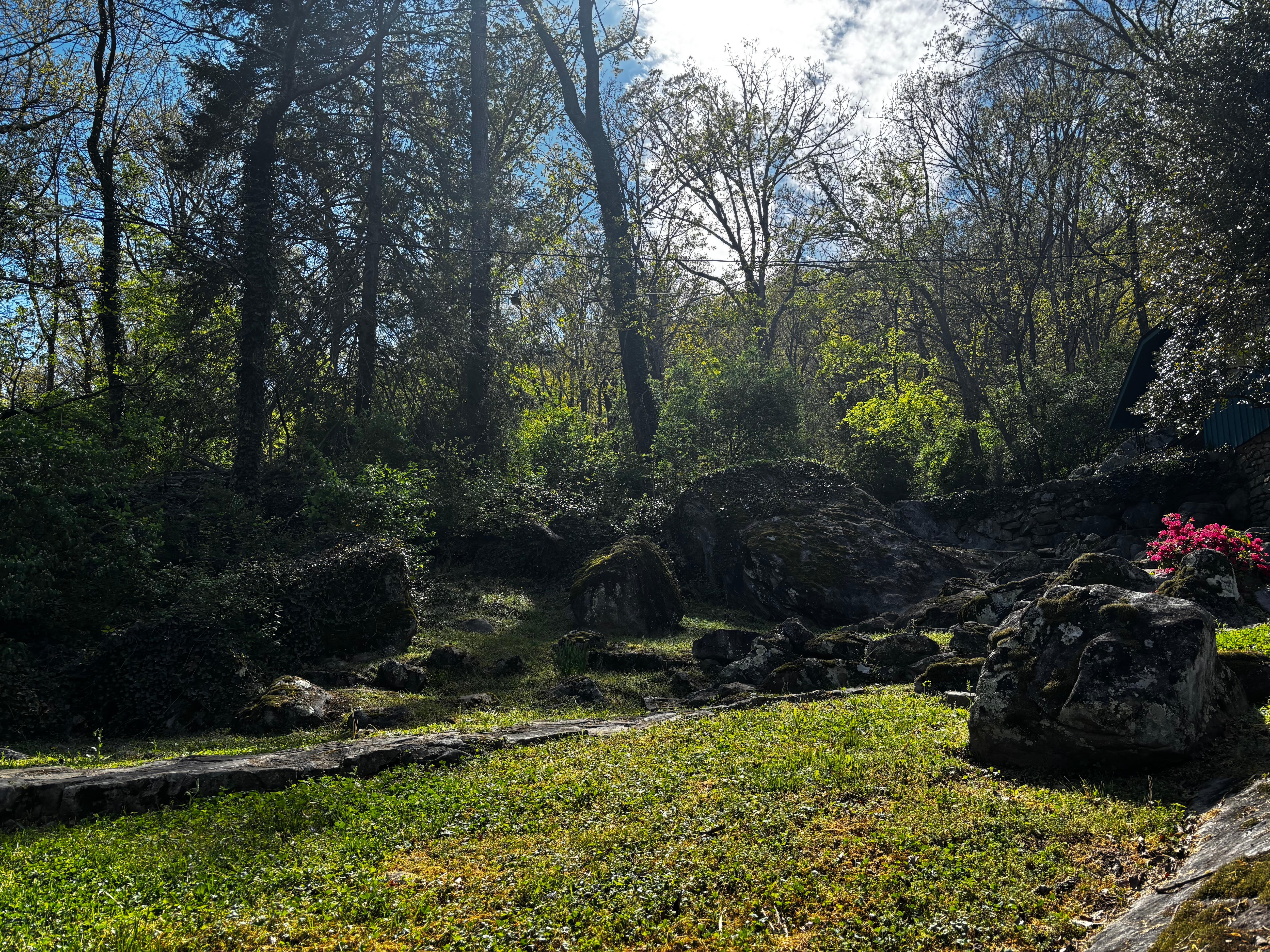 Our mountain terrain is awesome and we love all our boulders and curving side streets. Please take extra care as you park and back out. Three cars is the MAXIMUM amount of cars Mount Nouveau can accommodate. The parking spots at the top of the property are for the guests in the blue cottage, please respect their parking needs and privacy and park down the driveway. If any drivers are nervous about parking, you can park at the top of the driveway and walk down to the house from your car. Please keep in mind the driveway is shrouded by trees. There is a black and gold small sign with "Mount Nouveau" at the top left of the driveway with reflectors.