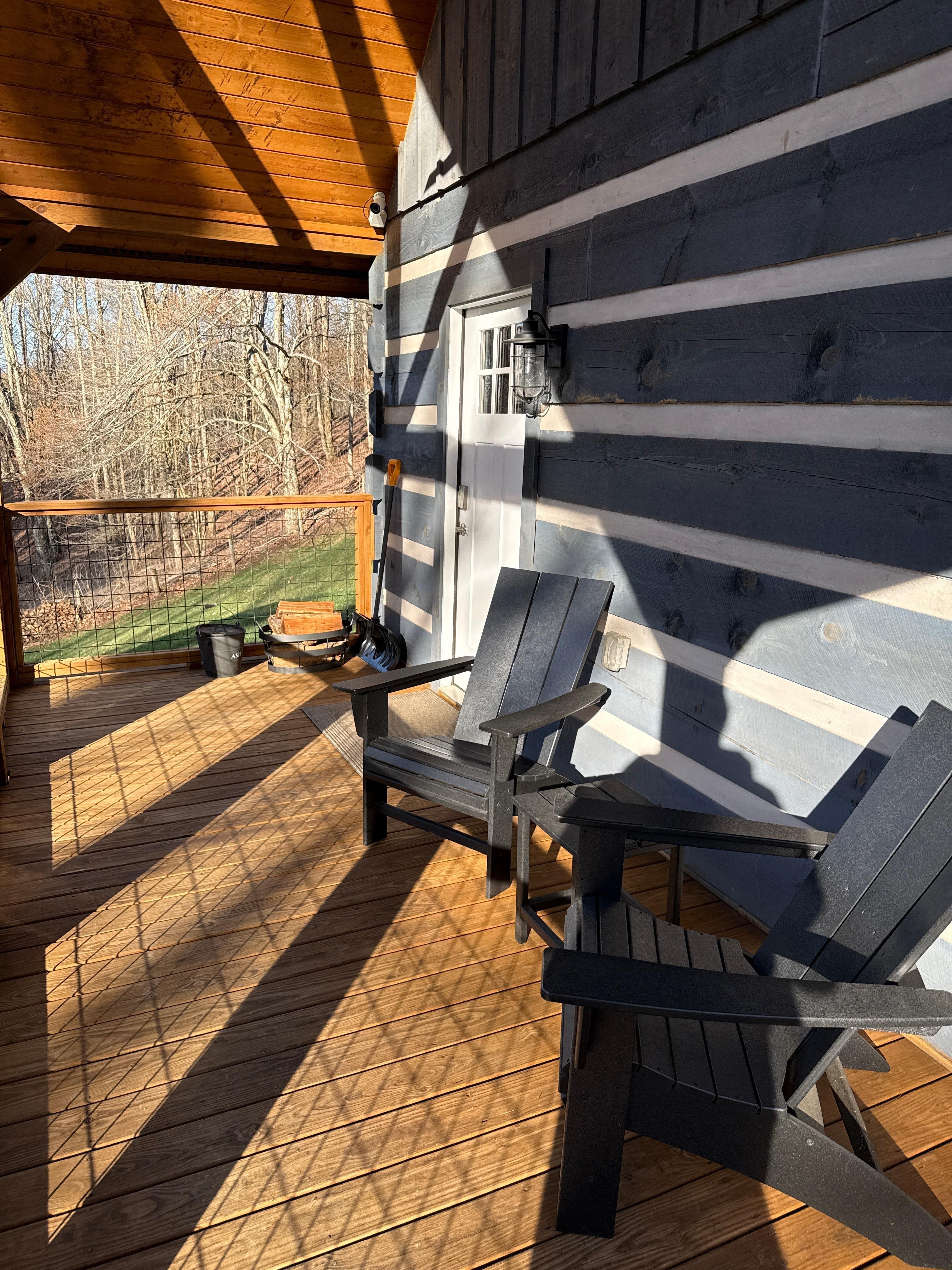 The cabin is located in a beautiful spot at approximately 4000 feet elevation. Due to the elevation, temperatures are typically much cooler than the surrounding areas. It is recommended to bring a jacket even in the warmer months. Due to the close proximity to Grayson Highlands State Park, you may occasionally see a wild pony wondering to the property. There’s bountiful wildlife around the property including deer, turkey, many bird species and the occasional bear.