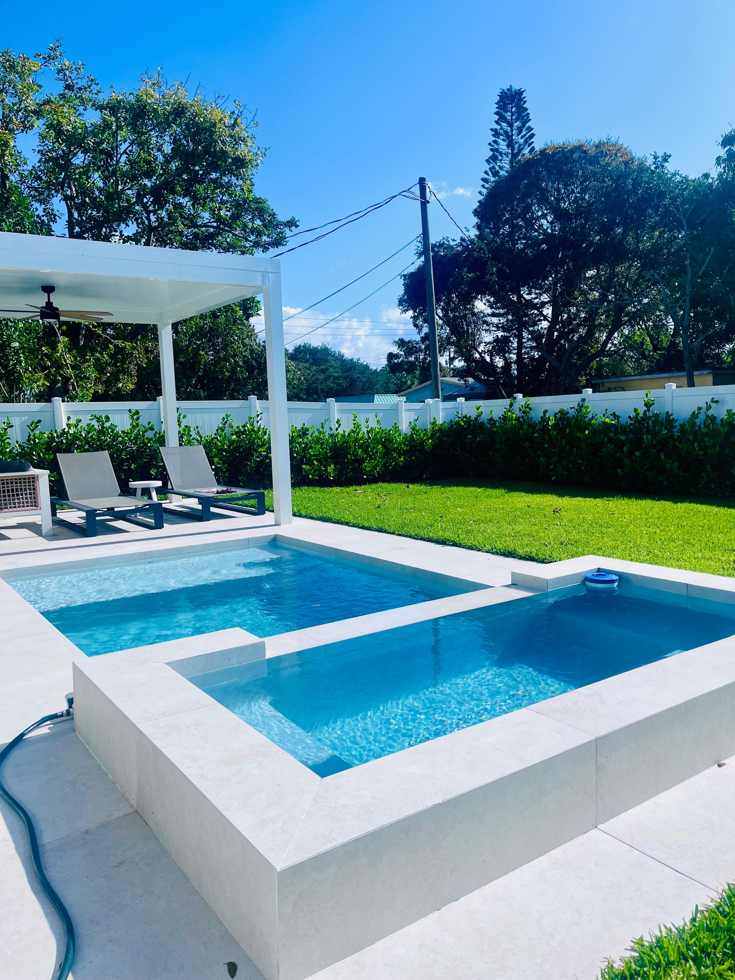 Enter this serene and beautifully designed 3-bedroom, 3-bathroom gem (no steps) + bonus room: home office w/ large comfy sofa chair & pull out twin bed. Enjoy the fully renovated and modern interior, every inch of this home has been thoughtfully designed, blending style with functionality to create the perfect living space. Enjoy the brand new backyard Oasis complete with pool, jet pool