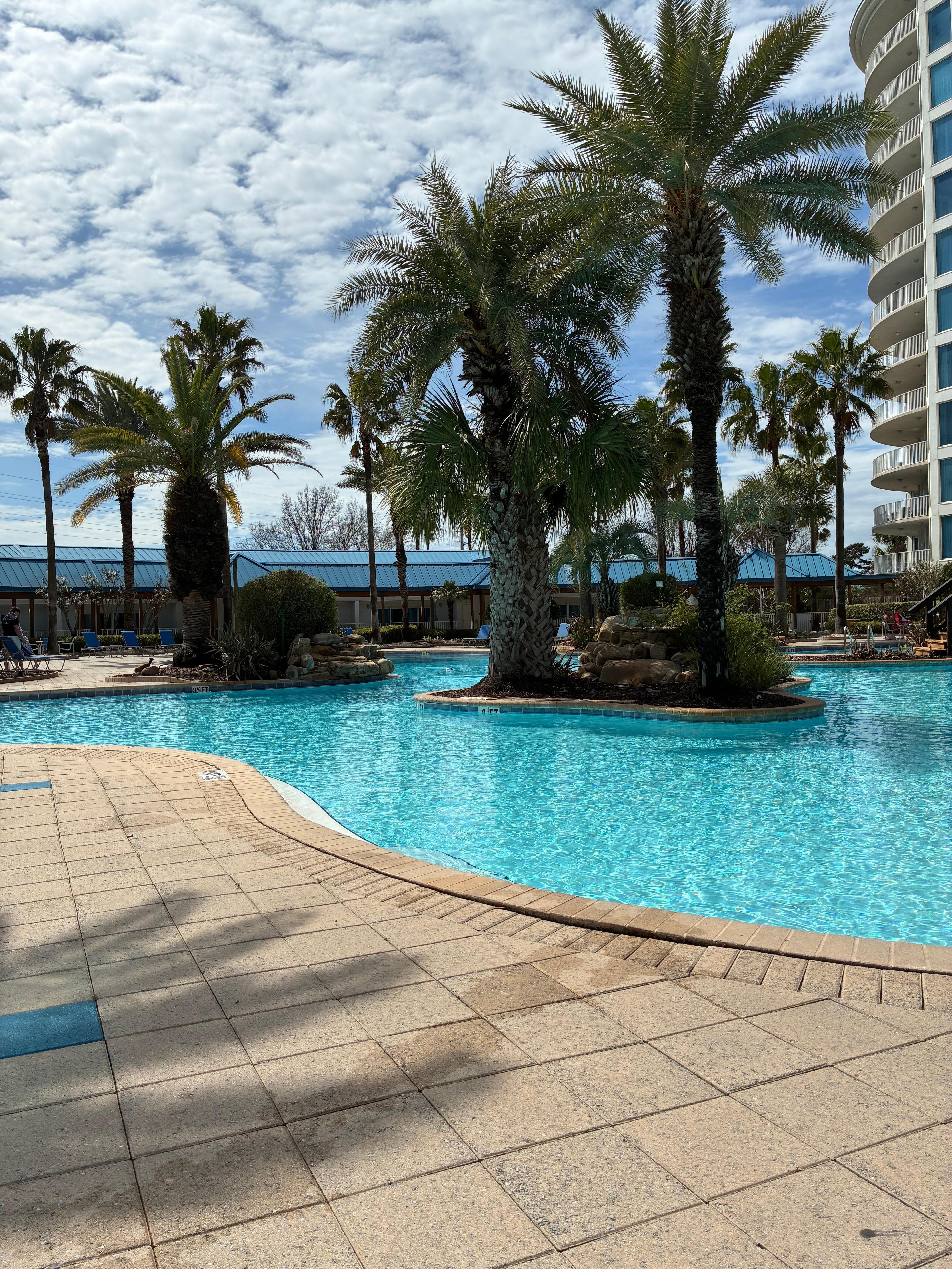 The Palms of Destin is known for its premier amenities, including an 11,000 SQ Ft Lagoon Pool: Enjoy a heated pool, hot tub, and children’s splash area, all designed for fun and relaxation.