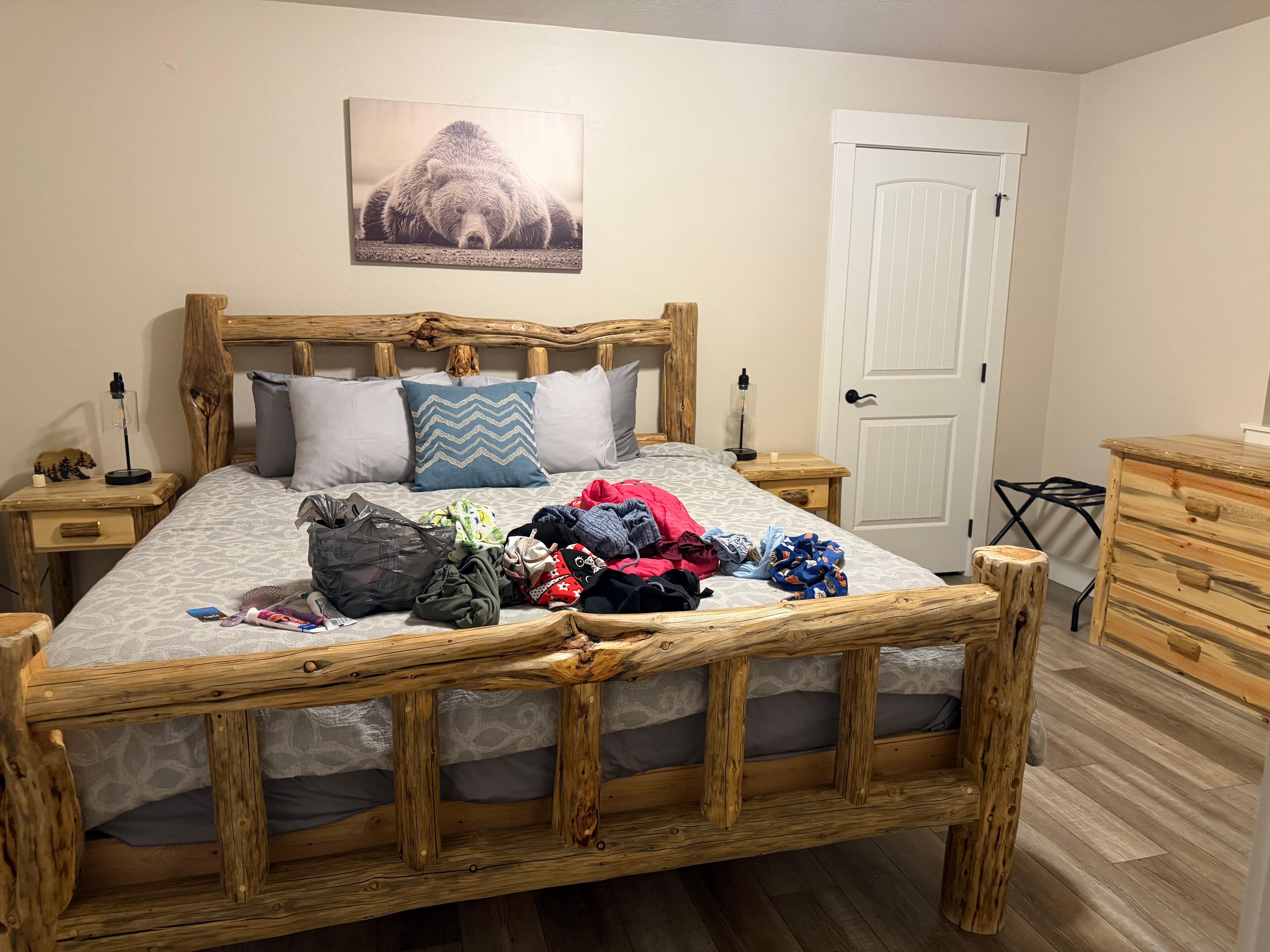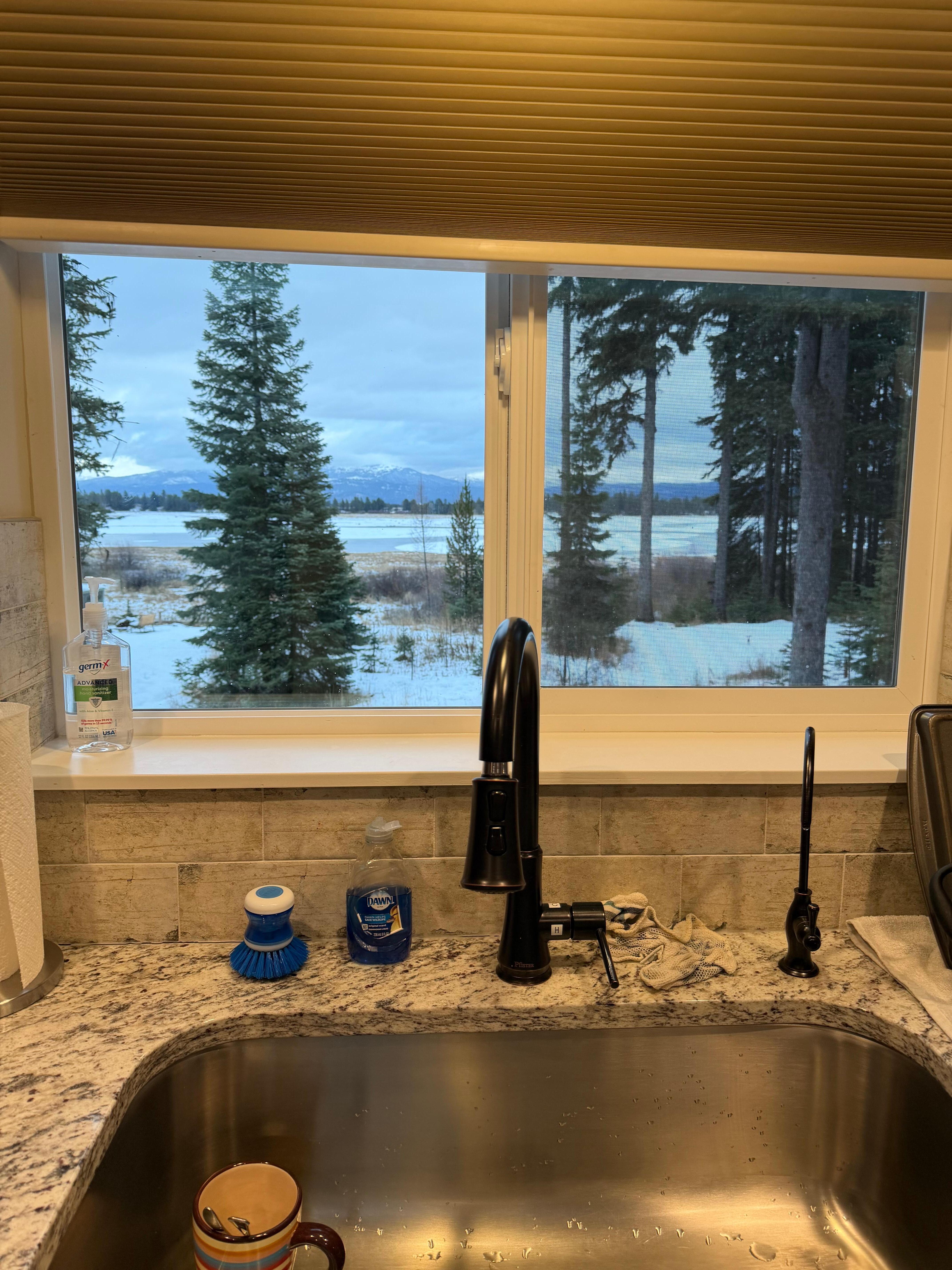 We have a covered carport to keep the weather off your vehicle with a huge drive-in and drive-out driveway for those with long trailers! Perfect for those who bring your boat, snowmobile, or other trailer up to 40ft long. The garage is locked for owner use only. There are two large picture windows to see trees, the lake, and the mountains all year. The reservoir is either rising in the spring or reseeding as the summer progresses and by the end of August it becomes a beautiful prairie with a river flowing through. Peak times that the lake is full are around the end of May to July. Each month offers a different but amazing view as noted below. Tamarack Resort is just 11 minutes away south of the property. We also have a portable inflatable queen mattress with a built-in pump (located in the king bedroom closet) that can be placed in the living room if you need a max of 5 people. For families with children, we have a baby gate for the top of the stairs and a Pack'n Play crib.