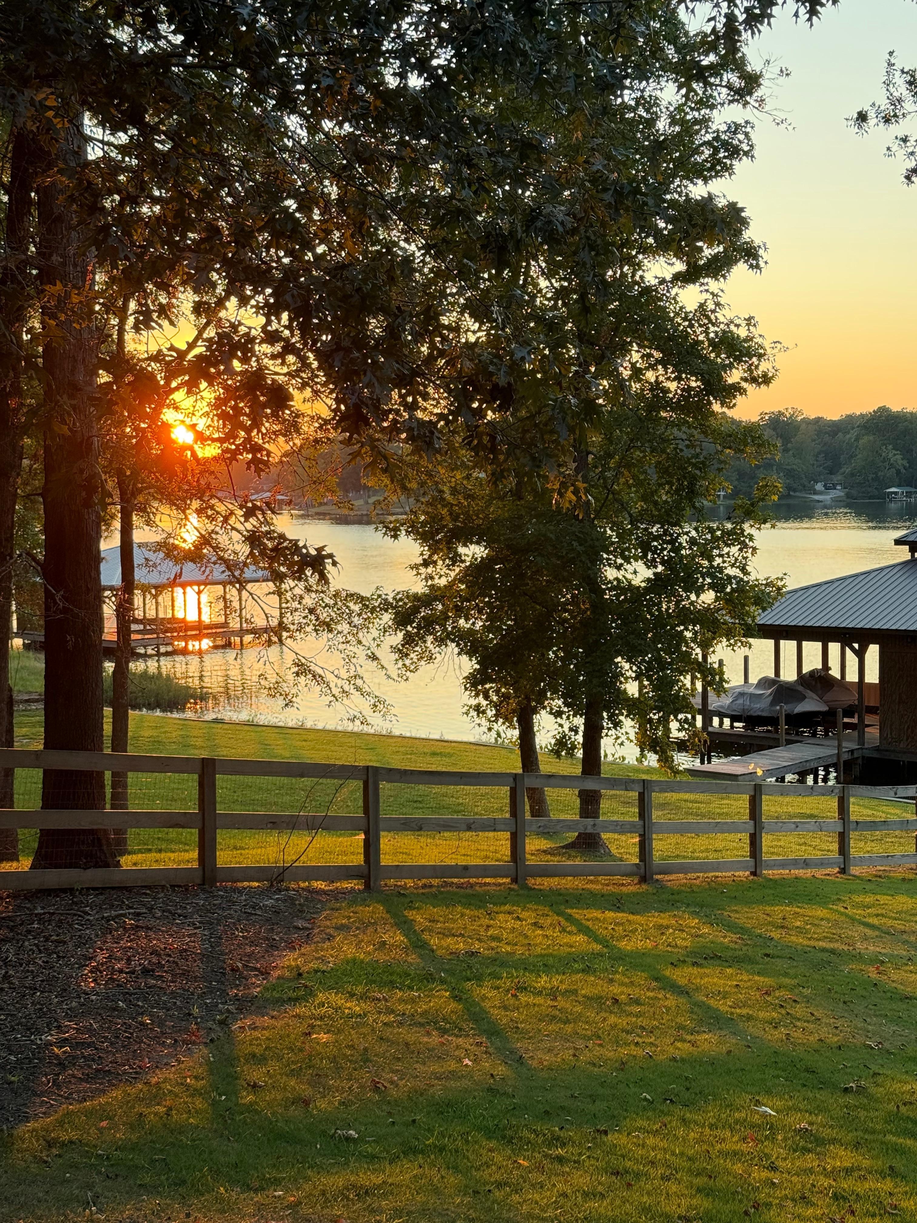 The lake house and property is beautiful. We enjoyed spending time together. We loved the back porch and dock.