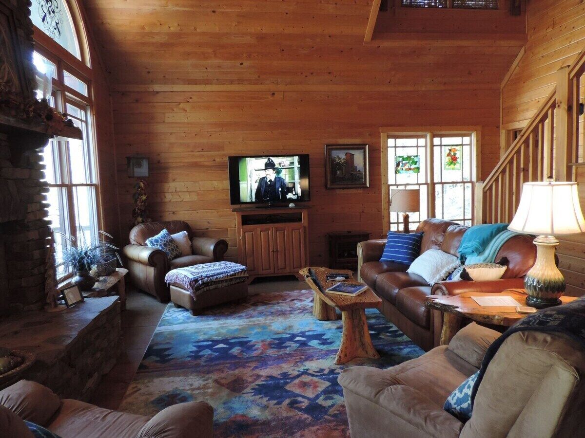 Admire wonderful alpine details as you enter the living space, which features hardwood floors, exposed tongue-and-groove on the walls and ceiling, and a beautiful stone hearth. Turn on the gas fireplace, take a seat in the leather recliner, and use the WiFi to plan tomorrow's adventures.