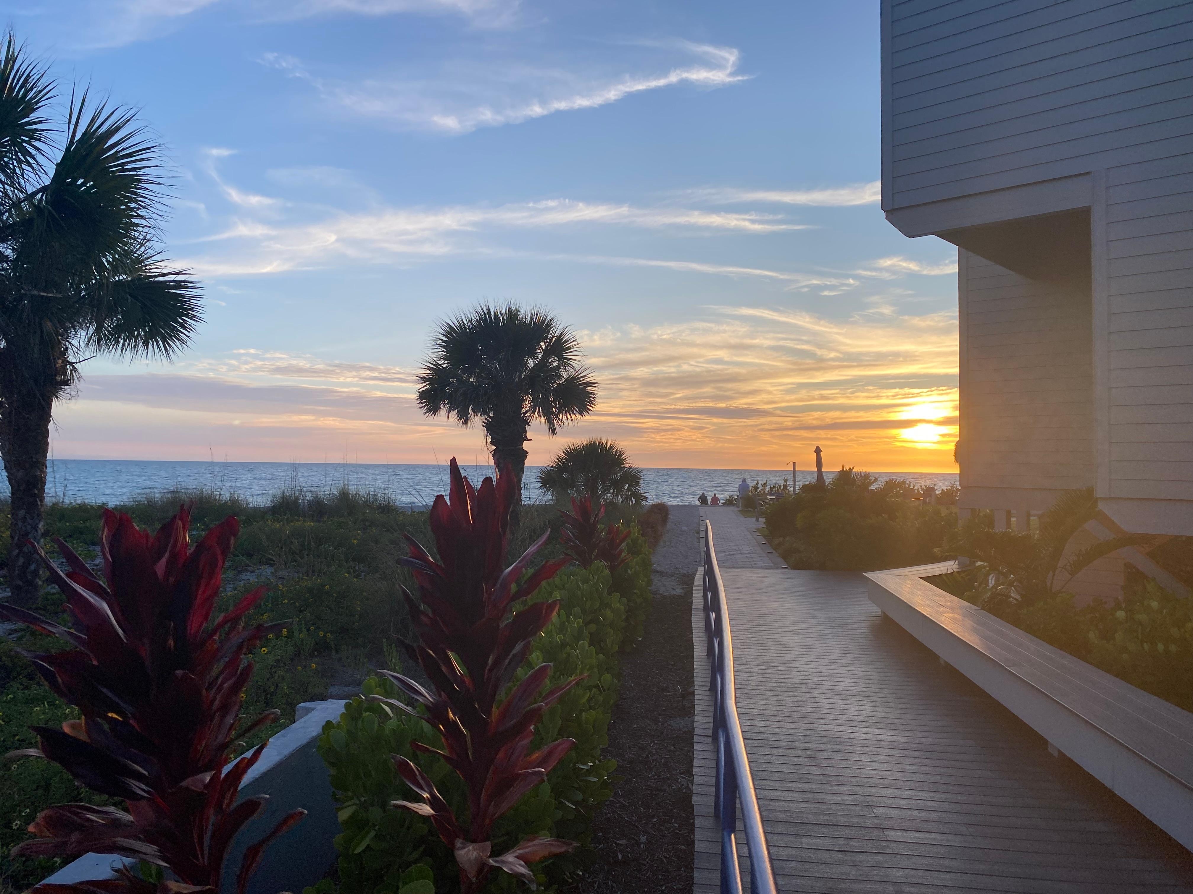 Imagine waking to the soothing sound of waves and stepping directly onto the sand from your freshly updated, end-unit 2-story condo, perfectly positioned mere steps from the shore for unparalleled beach access. This spacious layout offers distinct levels, providing enhanced privacy and ample room to spread out. The sun-drenched sanctuary boasts an open-concept floor plan flooded with natural light, creating an airy and inviting atmosphere. The fully equipped, modern kitchen is ready for culinary adventures, complemented by high-speed Wi-Fi and Smart TVs throughout for seamless entertainment. Upstairs, a convenient minibar/fridge area features a queen sleeper sofa and its own full bathroom, with pocket doors that can transform this space into a private, third sleeping area. Retreat to one of the two luxuriously appointed bedrooms, each designed as a serene haven for comfort and relaxation. With three private balconies (two on the first floor, one upstairs), you'll savor the invigorating ocean breeze and breathtaking views, perfect for morning coffee, sunset cocktails, or simply unwinding. Your stay also includes a private parking spot and access to a refreshing community pool. Plus, you're just a short walk to local restaurants offering outdoor seating and live music, making this the ultimate choice for both serene relaxation and thrilling adventures (Manasota Key restaurant photos COMING SOON). DOWNTOWN DEARBORN STREET is a short drive away on the mainland. Dearborn Street features several blocks of independent shops & eateries in the Old Englewood Village rich in historic charm. Boutiques, gift shops, art galleries, coffee shops & restaurants line the street & make it a great shopping destination. Live music events at different venues. The Farmers Market takes place every Thursday (Oct to May) & Pioneer Plaza plays host to a variety of fun events including Arts & Crafts Shows, Halloween Safewalk, Christmas Walk, Seafood Fest, Beer Fest, etc. throughout the year (Downtown Dearborn Street shown in photos). Don't miss your chance to book this unforgettable beachfront experience!