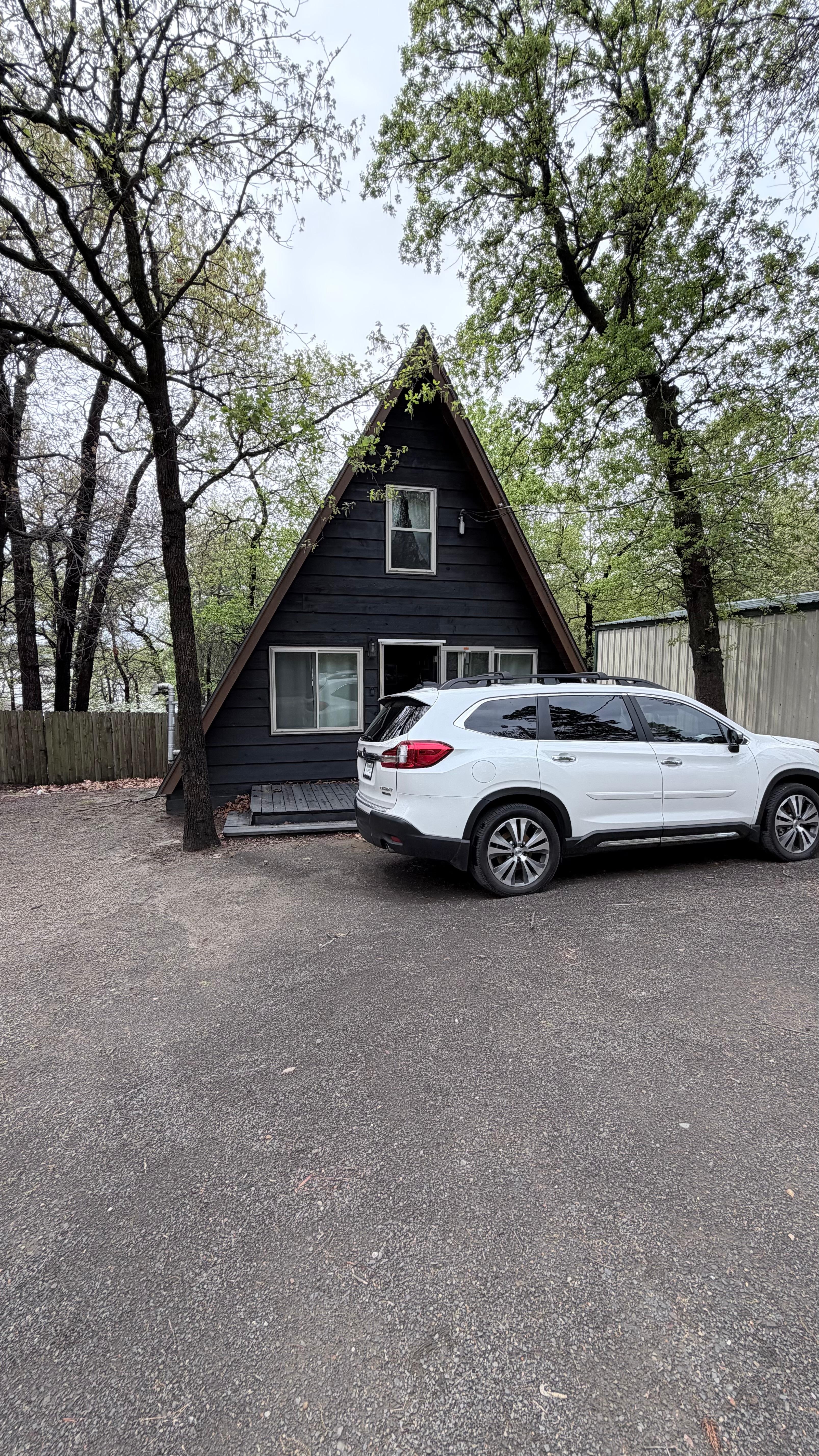 Lakefire Cabin has modern finishes, designer décor, an incredible view of the lake & just a 56 sec walk to the sandy shores of the lake. Step outside to gaze at the stars in the night’s silence & wake up to the sun peering over the water. Secluded enough to forget the sights & sounds of city life but only 20 mins from Eufaula’s downtown with shops, amphitheater, restaurants, & Jellystone (buy a day pass). Whether it’s rest, family fun, or water adventures, Lakefire Cabin is the perfect escape. This updated cabin is a perfect place for families to gather to make memories on Lake Eufaula. There is plenty of room to bring a boat in the circular driveway. You’ll have access to the whole cabin. There is a storage building on site, but it remains locked and inaccessible. We live in OKC, so we are two hours from the cabin. If an emergency happens, we can get there or contact someone local to help you. Please do not hesitate to message us. This neighborhood is so quiet. Most people are full-time residents and take pride in their space and enjoy their quiet neighborhood. LakeFire Cabin has a small circular driveway with plenty of space for two cars and a boat. As you view the pictures, please note the incline of the stairs. Children will need to be supervised and everyone should be careful. Also, due to the true a-frame structure design, doors will not fit. Curtains are provided for privacy.