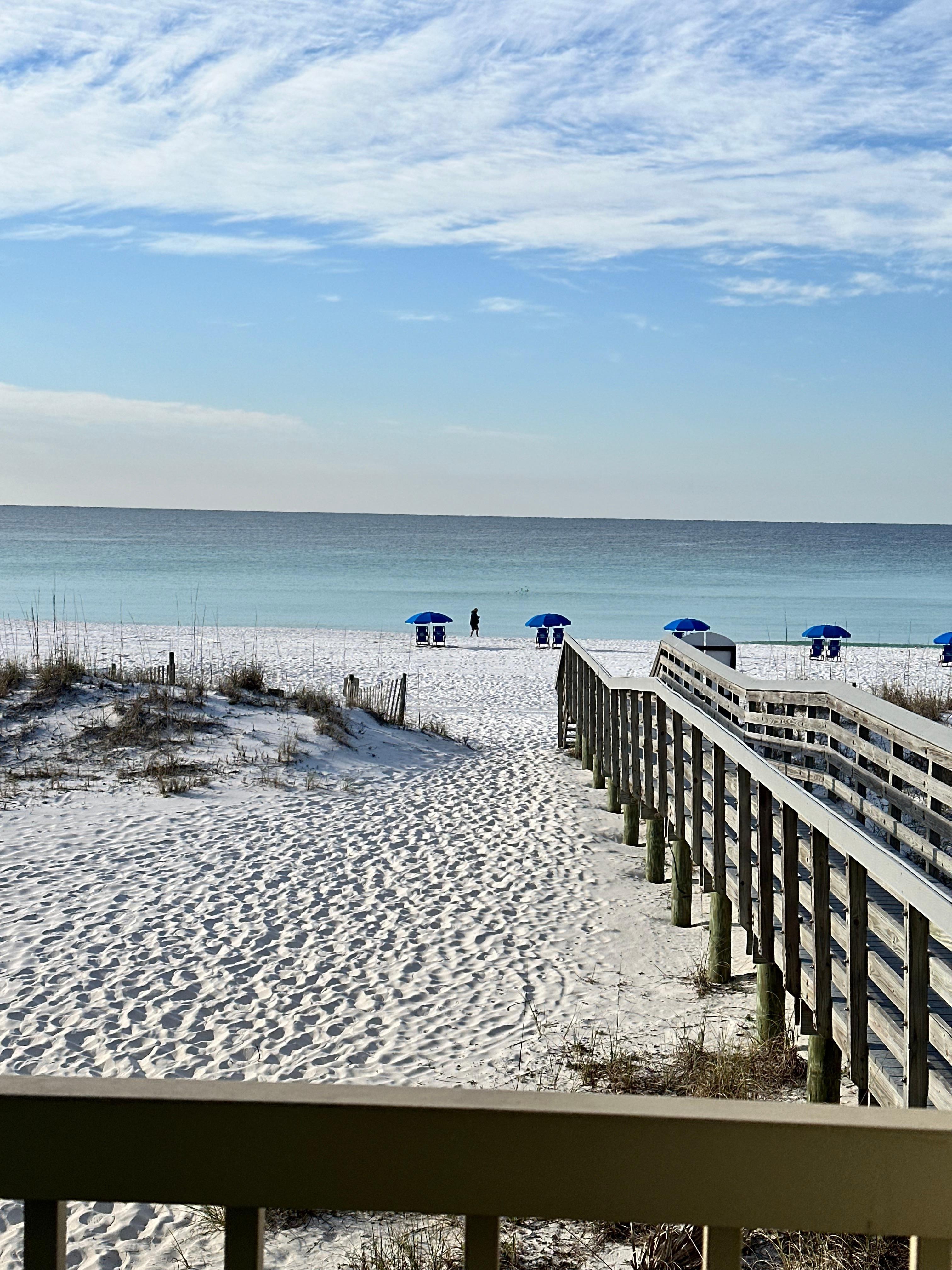 Watch the dolphins in the morning, and the sunset in the evening from the private balcony. There is a grill for cookouts, and we have beach chairs, umbrellas and floats for fun on the beach. The Pier and Boardwalk are an easy walk down the beach.