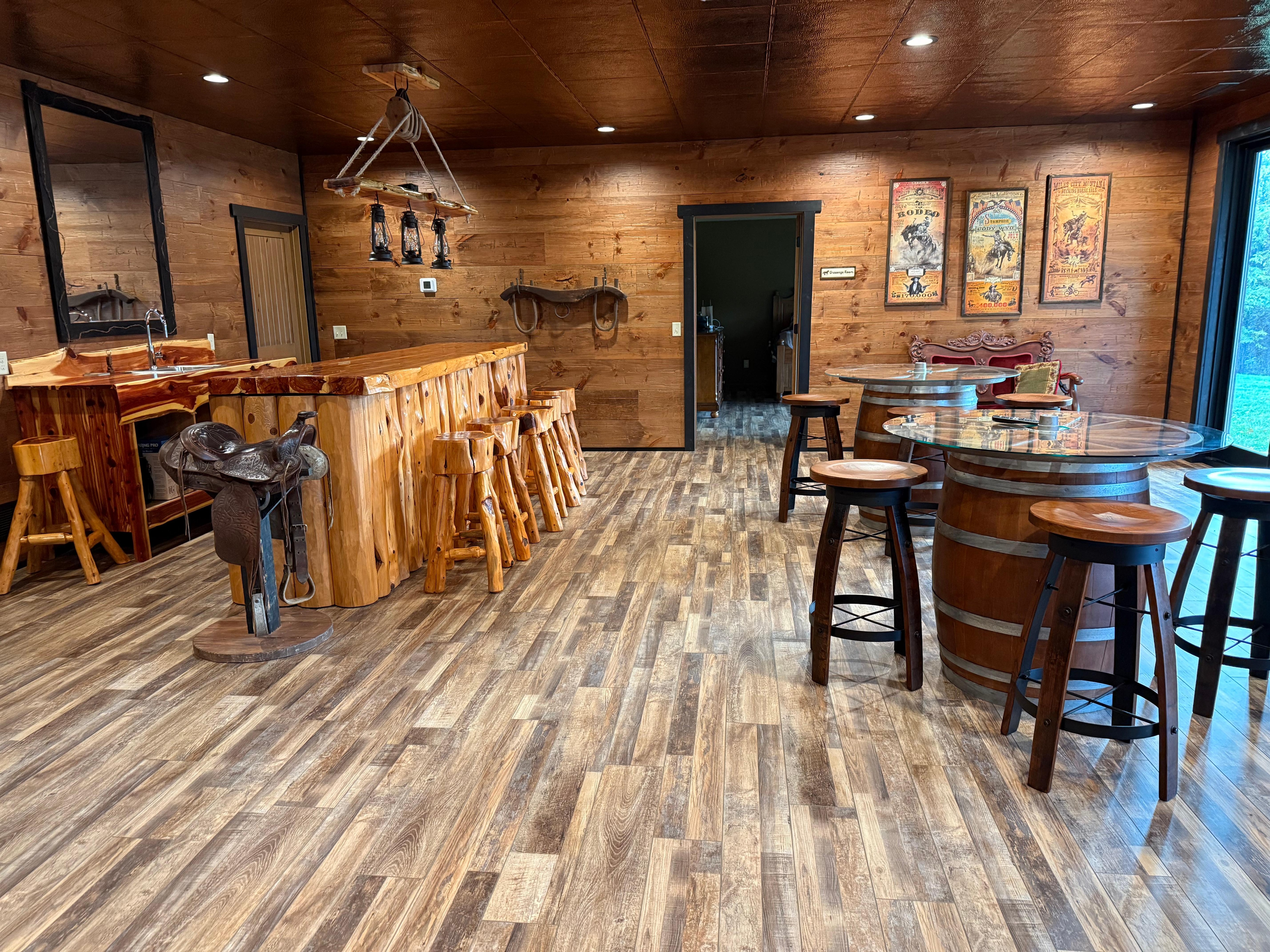 Escape to Timber Ranch, where the rugged Rocky Mountain Spirit meets the scenic hills of Illinois' Driftless Region. Just minutes from charming Galena, Eagle Ridge Resort and Chestnut Mountain, this unique, newly built retreat is perfect for adventurers, golfers, skiers, horse owners (yes, you can bring your horse) and those who love to explore and shop. Unwind on the back porch with a good book, gather friends for a celebration in your own private saloon, sip wine by the cozy fireplace, enjoy the newly installed hot tub, watch the big game on the 85" TV, or cook up something special in the elegant kitchen with professional grade appliances. Whether you're here to unwind or turn up the fun, Timber Ranch is the place to be!