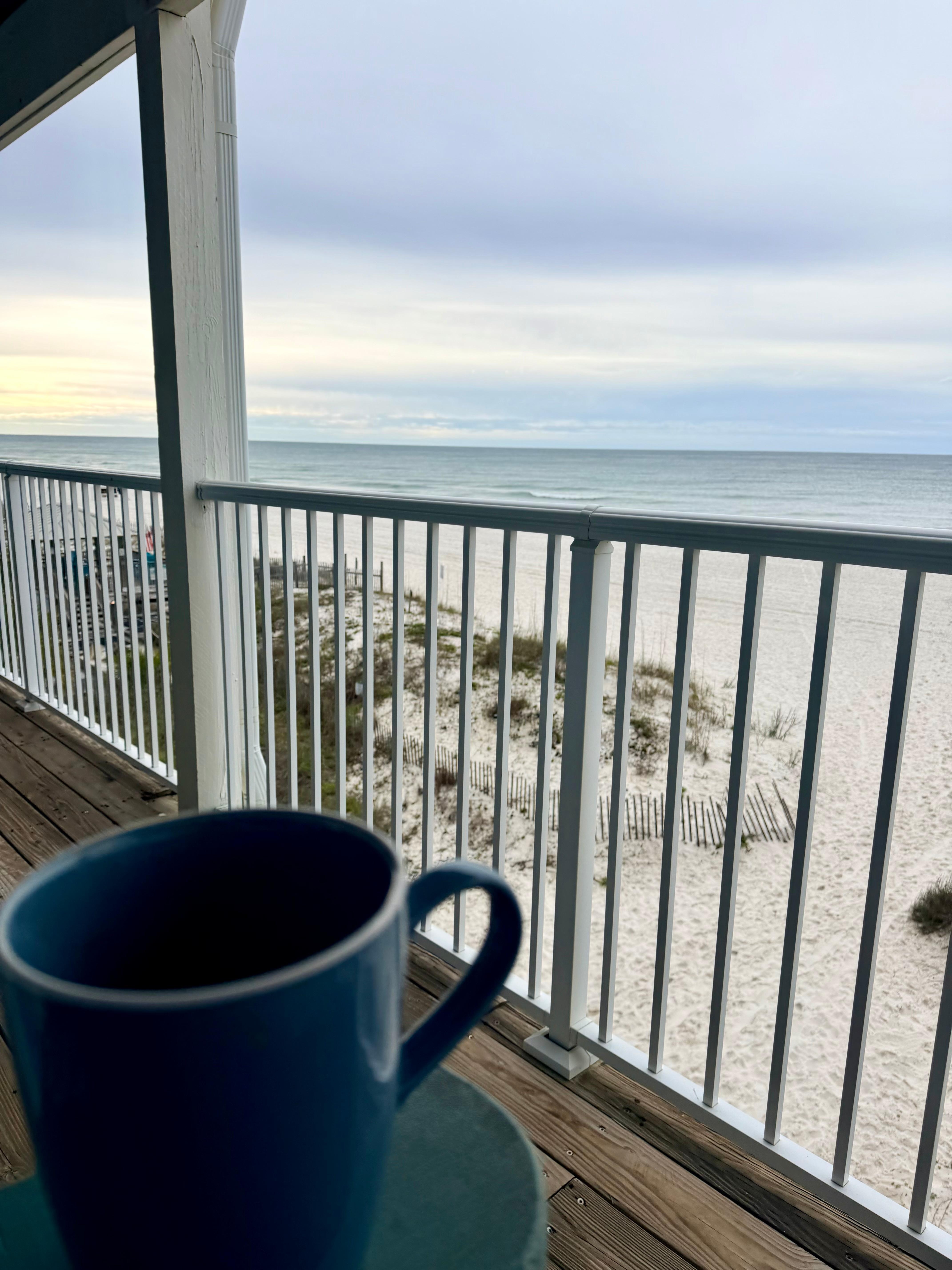 The balcony has amazing views of the gulf and is a great place to relax and enjoy the beach right outside the door with the lounger and Adirondack chair provided. Enjoy your morning coffee or even an evening cocktail on this balcony listening to the peaceful sounds of the waves. Since this is a low density complex, it feels very private and is a great way to view the sunrise/sunset.