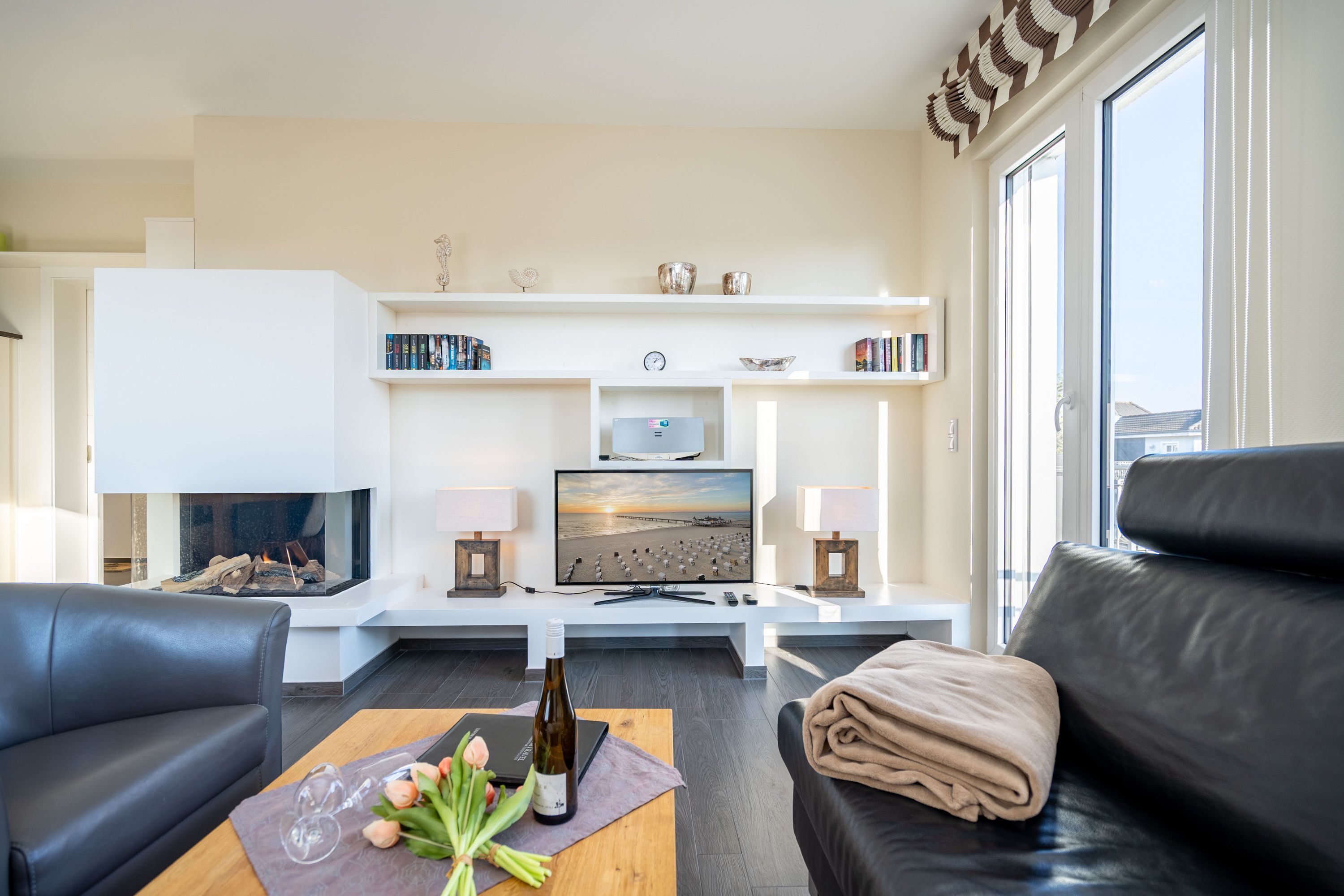 The Villa Ilona is located just 150 meters from the eight kilometers of beach promenade on the Baltic Sea. The sunny and modern furnished apartment with a combined dining and living room and two bedrooms was built of 2008. All windows have blinds. In the cold season you will enjoy the underfloor heating. In bad weather, you can be pampered in the only about 100 meters away Ostseetherme.