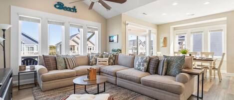 Bring your furry companions along for the fun—Going Coastal is dog-friendly with a pet fee, welcoming dogs to join in on the vacation excitement! Step outside onto the private boardwalk and beach access, where you can spend your days soaking up the sun, swimming in the ocean, or strolling along the sandy shores.