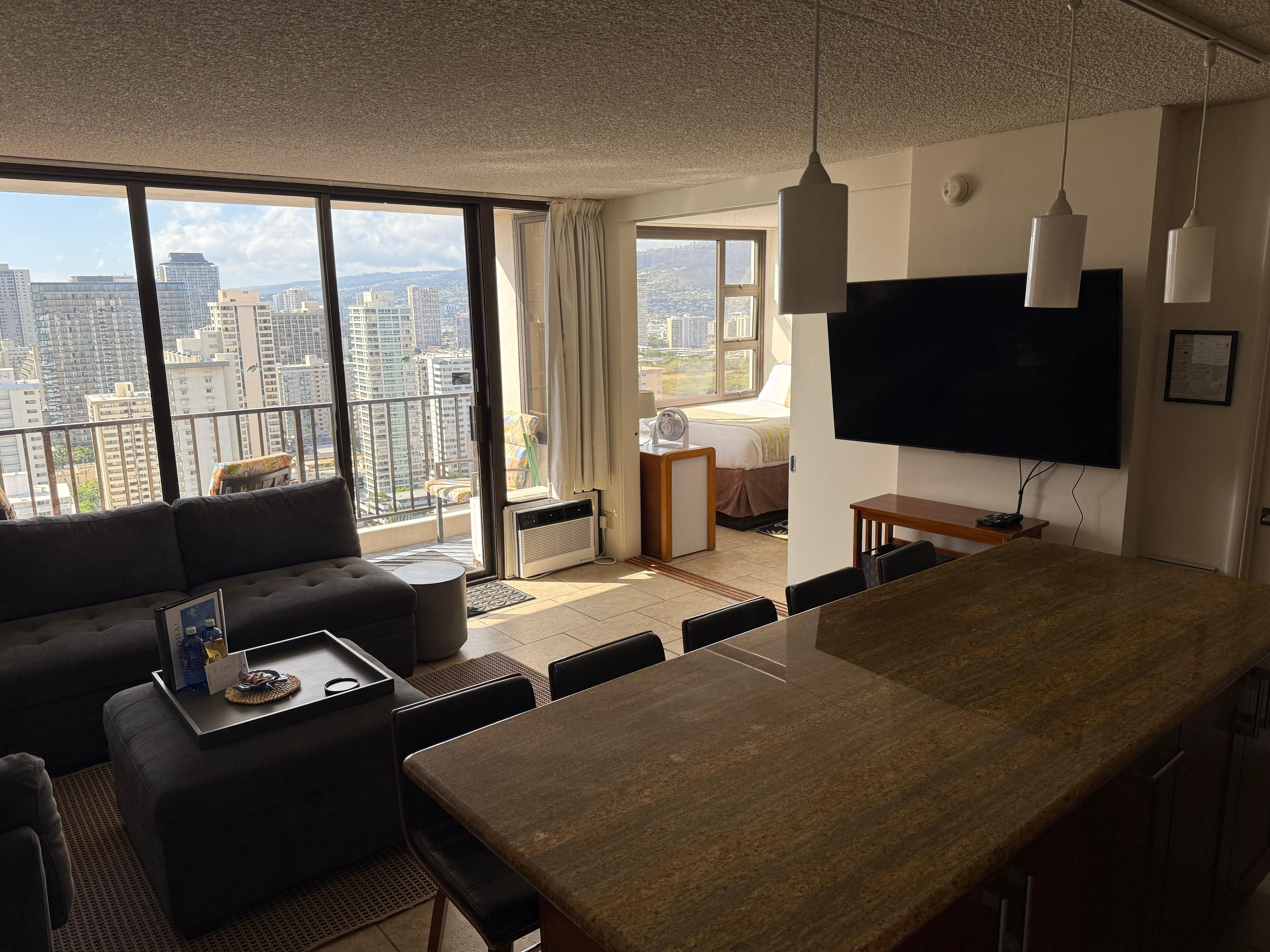 Welcome to the age of upgrades, where "island modern" meets comfort at our fantastic well-equipped Waikiki Banyan condo! Marvel at fresh furnishings, comfy new beds, and an impressive 60-inch Smart TV that rules the living room. Prepare to be pampered, as we've stocked the condo with everything your heart desires, including not one, but two Smart TVs! Spoil yourself in the largest unit available, boasting a wonderful makeover! Free high speed wifi and free parking for all guests!