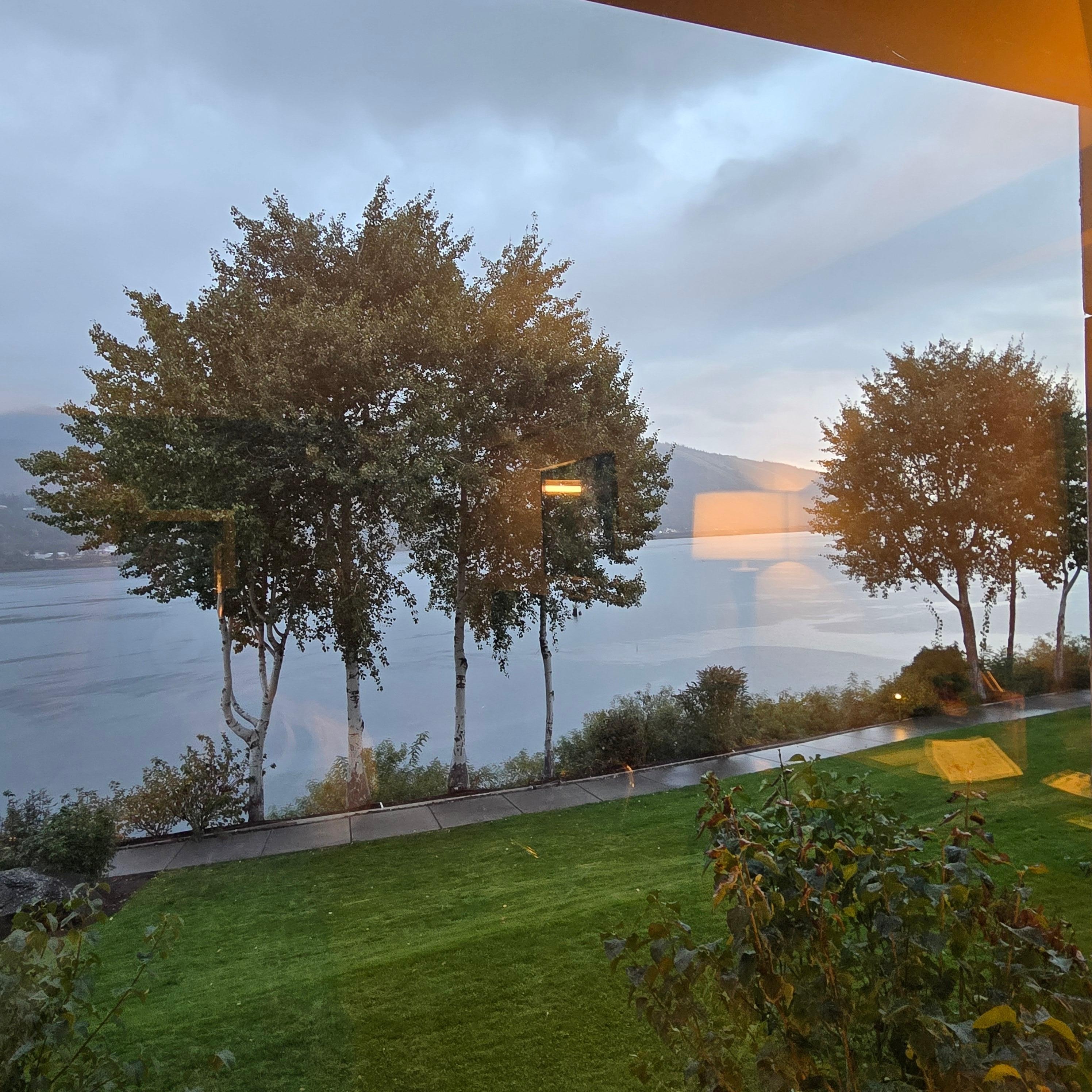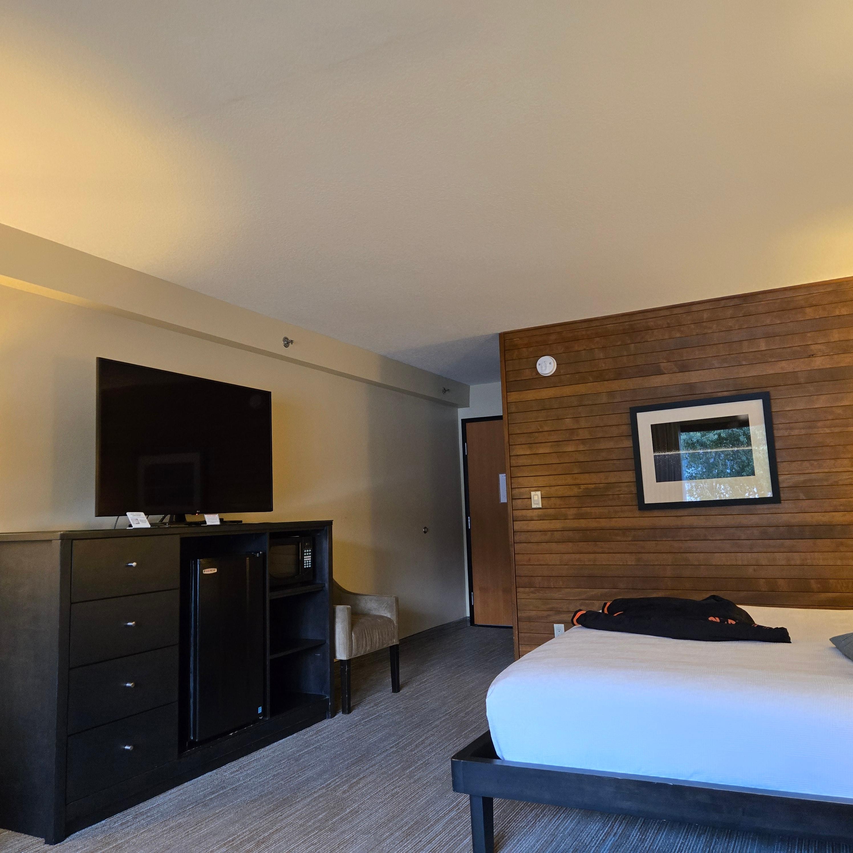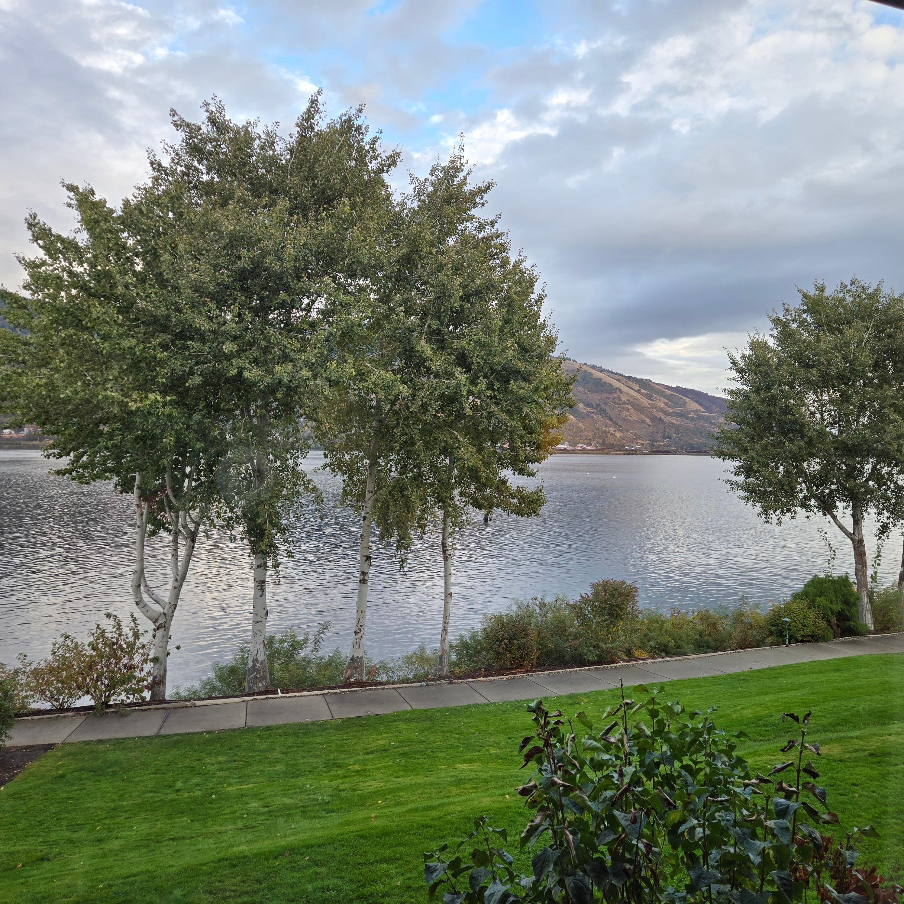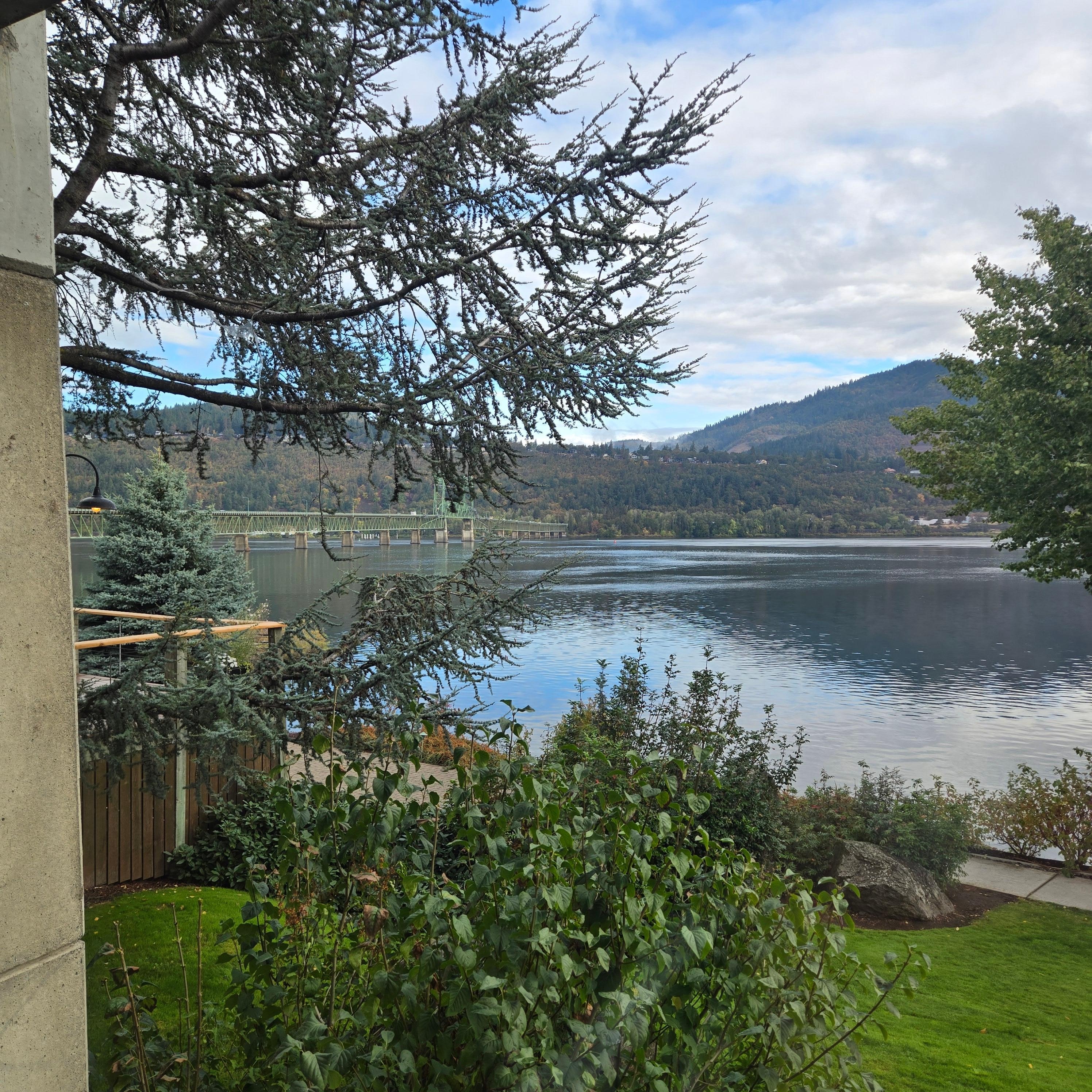 The hotel is nice and in a convenient location. We called in advance of making reservations to ensure that the parking lot could accommodate a truck with a trailer, and they said yes that they had RV and trailer parking. We were intown for a car show. The parking lot is very busy, and it was not easy parking a truck and trailer. We made reservations 2 months in advance for an upper room with a river view, however, when we arrived, they had us booked into a lower-level room with a view of the parking lot. They did adjust our bill appropriately; however, it was disappointing that we didn't have the river view on our stay. The hotel and restaurant are nice, and the room was comfortable. The staff was pleasant. Someone at the hotel had left a message on the room lan line but there were no instructions on how to pick up the message on the phone. We called the front desk, and they didn't know either. After our second call to the front desk, they called a supervisor to get instructions. They either need to put instructions in the rooms or leave messages on the guests' cell phone.