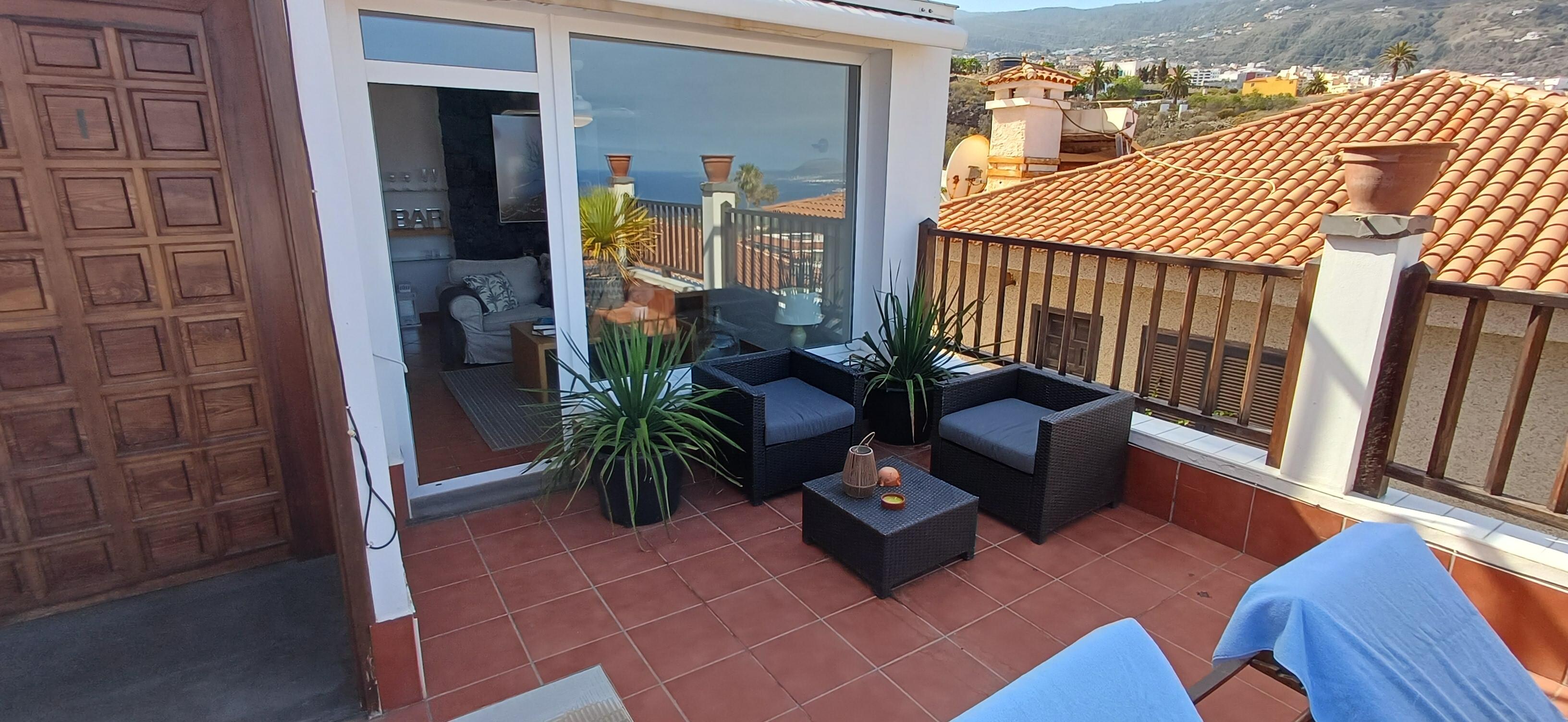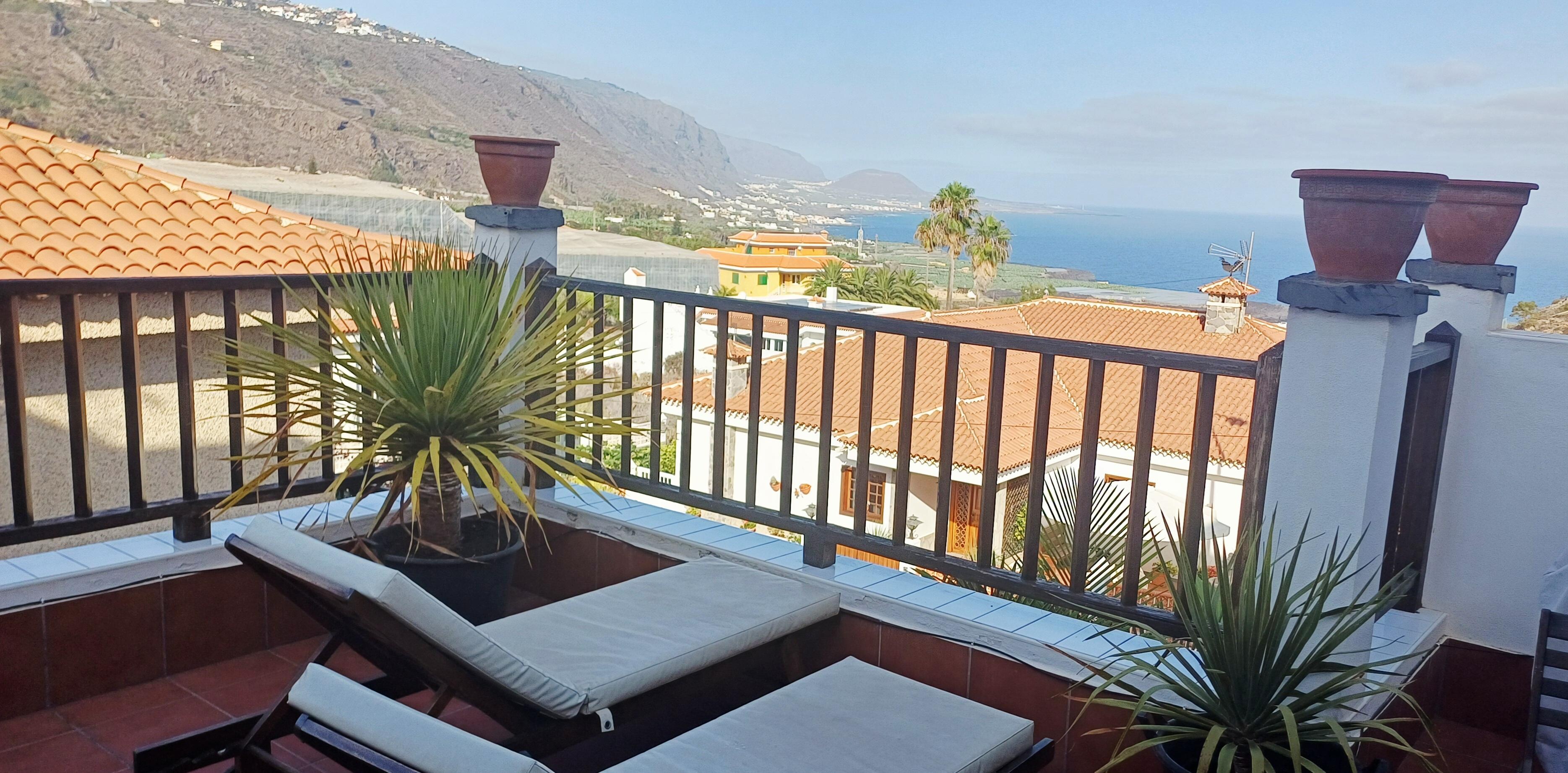Nested on a hillside between the base of the volcano and the ocean your apartment and terrace offers one of the most stunning view of the whole island: the green north coast with its spectacular sunsets and the massive volcano Teide, to the other side.