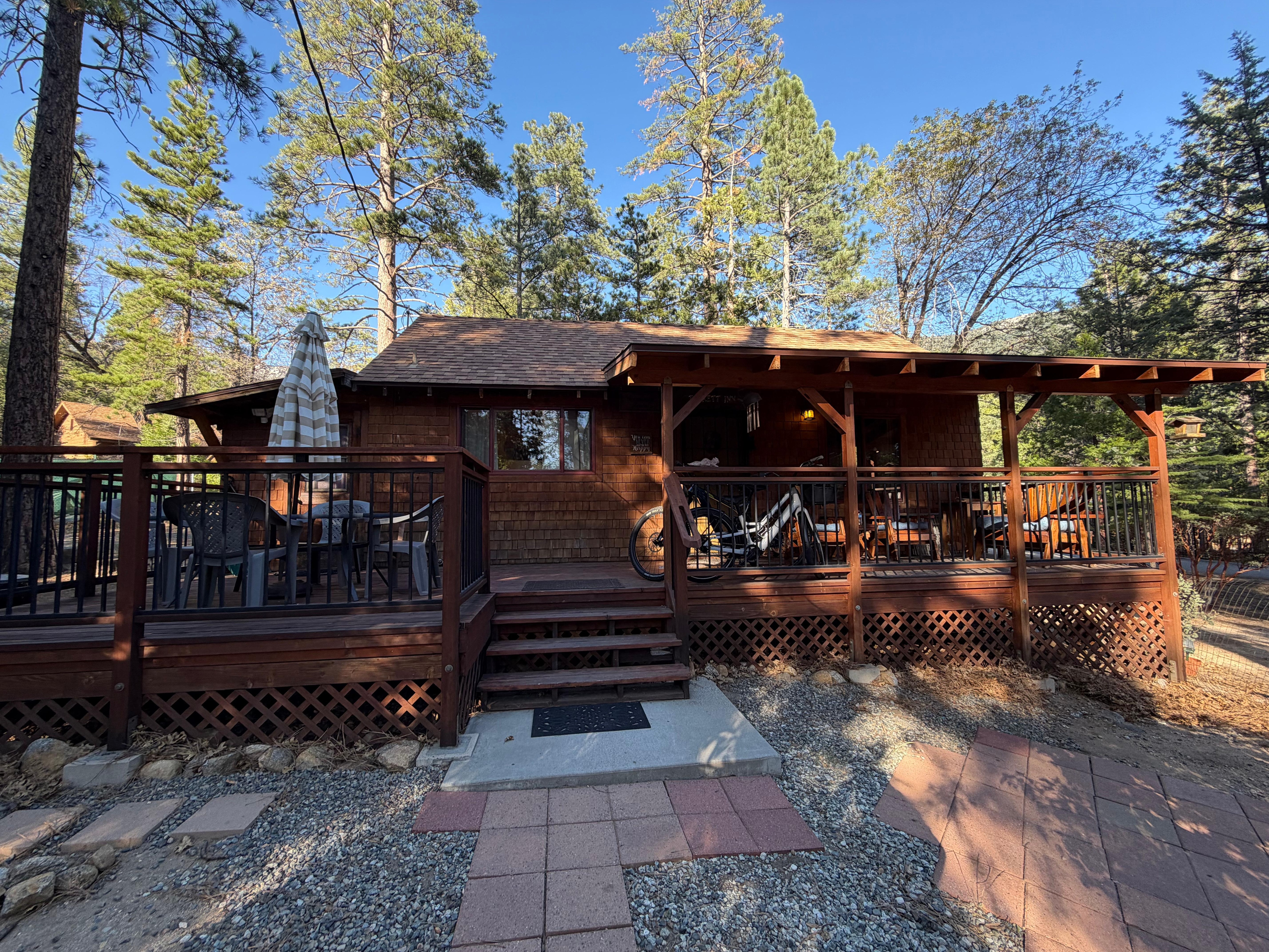 Conveniently located within walking distance to town, Tuckett Inn eliminates the need for driving, allowing you to immerse yourself in the tranquil surroundings fully. Step outside onto the porch and bask in the serene beauty of towering mountain pines, creating a captivating backdrop for your stay. What's more, this pet-friendly retreat comes complete with a fenced yard, welcoming your furry companions to enjoy the getaway with you.