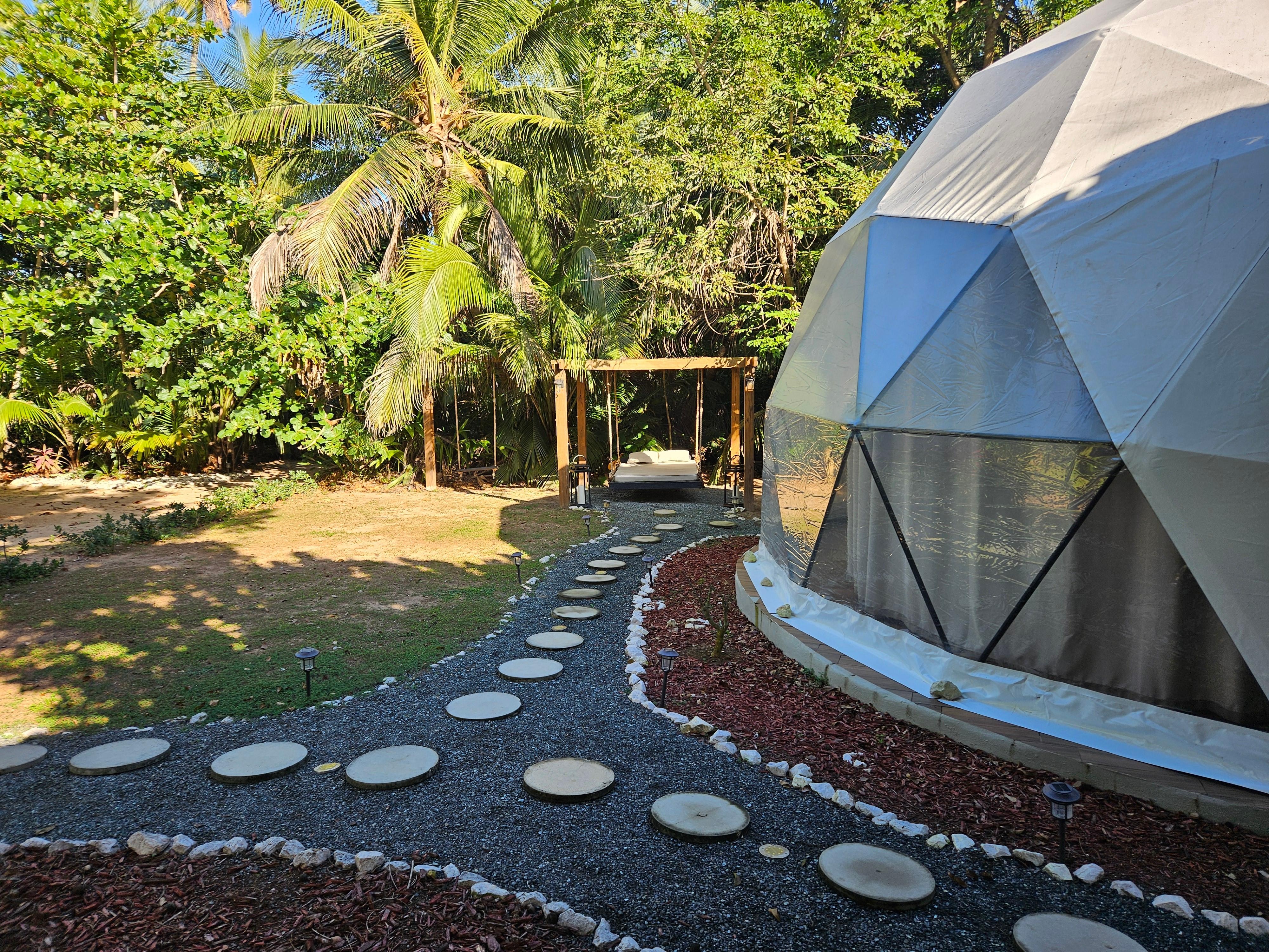 Secret Experience is a sophisticated and cozy Geo Dome treasure, surrounded by nature and with an unmistakable style. Located between a private 4 acres of land away from the hustle and bustle of the city, while being close to the most exquisite restaurants and beaches of the west side (5-10minutes), we are ready to welcome you and your plus one.