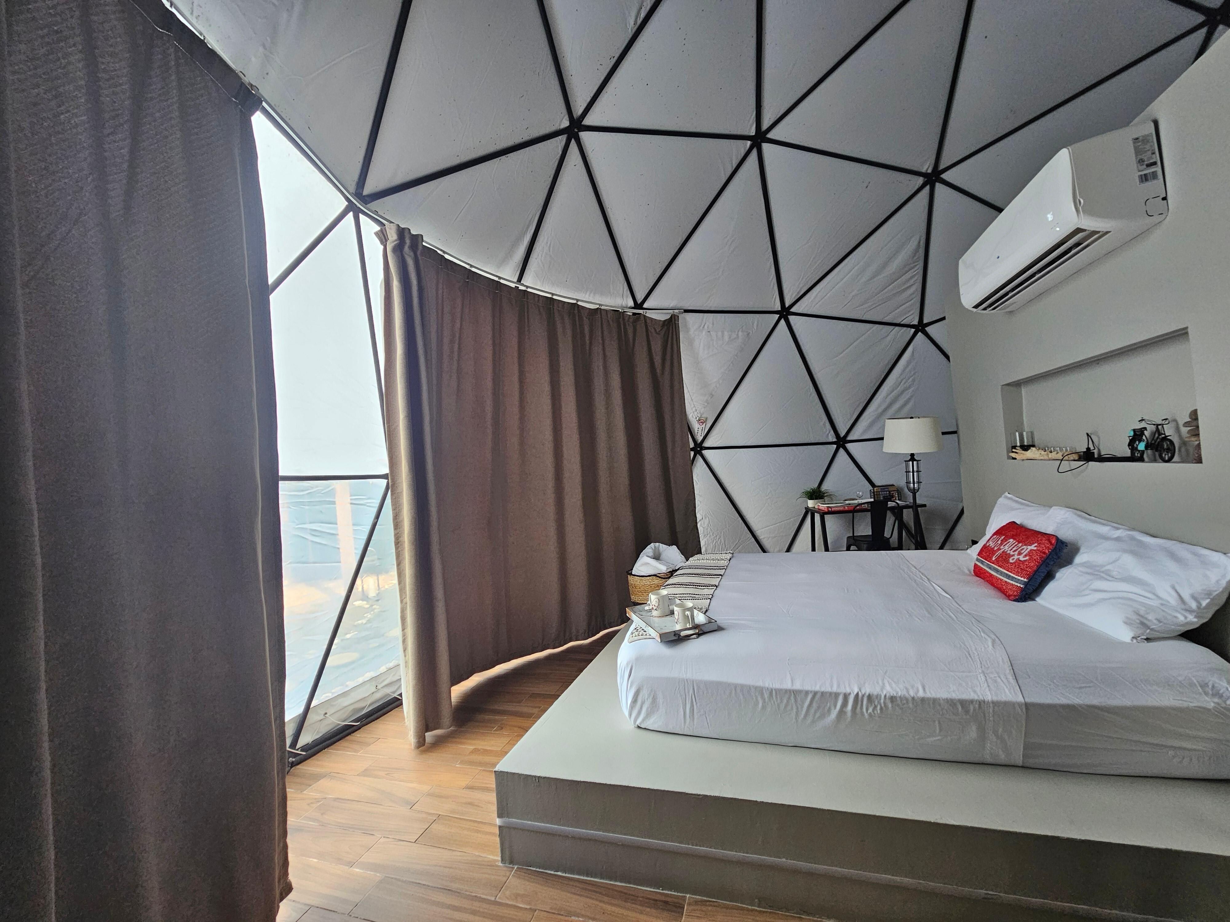 If being outside isn't your thing, you can choose to go inside the dome, enjoy the stars through the sunroof while taking a break in the bathtub or king bed.