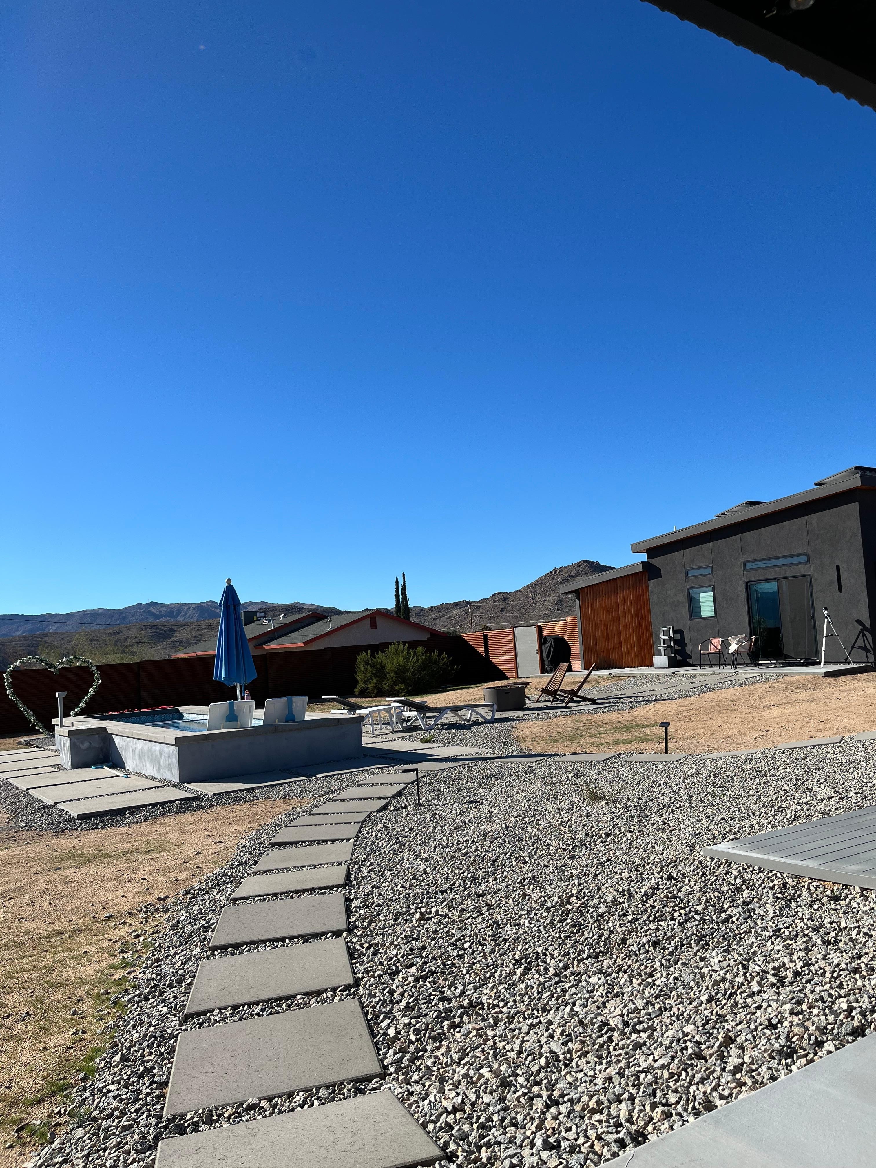 Experience Joshua Tree in style at this brand-new luxury tiny home! Soak in the heated pool and jacuzzi, stargaze by the fire pit, and enjoy movie nights in the outdoor theater. Inside, unwind under 13-foot ceilings, cook in the romantic fully equipped kitchen, or refresh in the spa-like bathroom with a stunning 13-foot mirror. Minutes from Joshua Tree National Park with an EV charger for convenience. Your perfect desert getaway awaits!