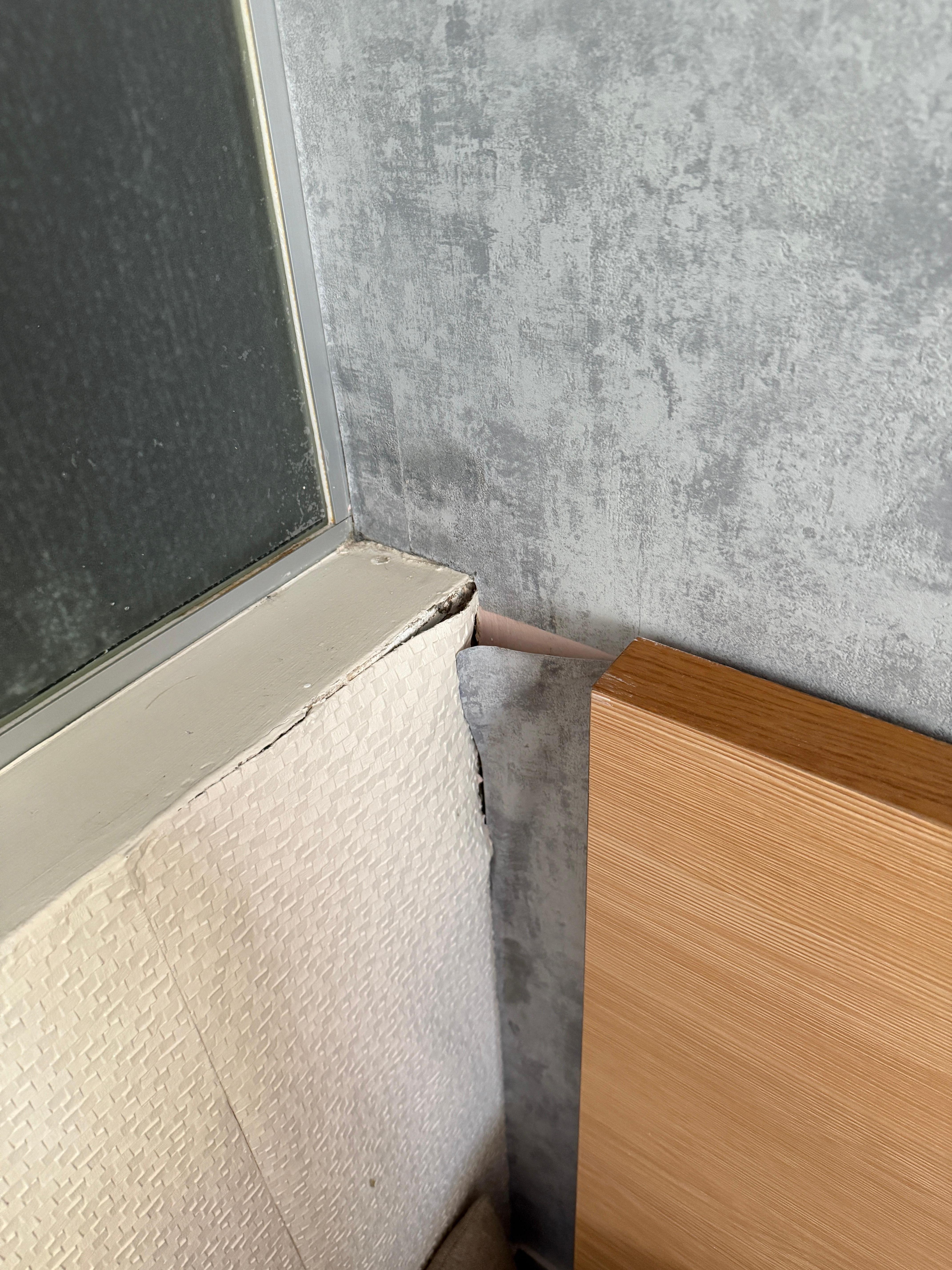 Catastrophique , chambre au RDC insalubre avec du moisi autour des fenêtres sur un mètre de hauteur .