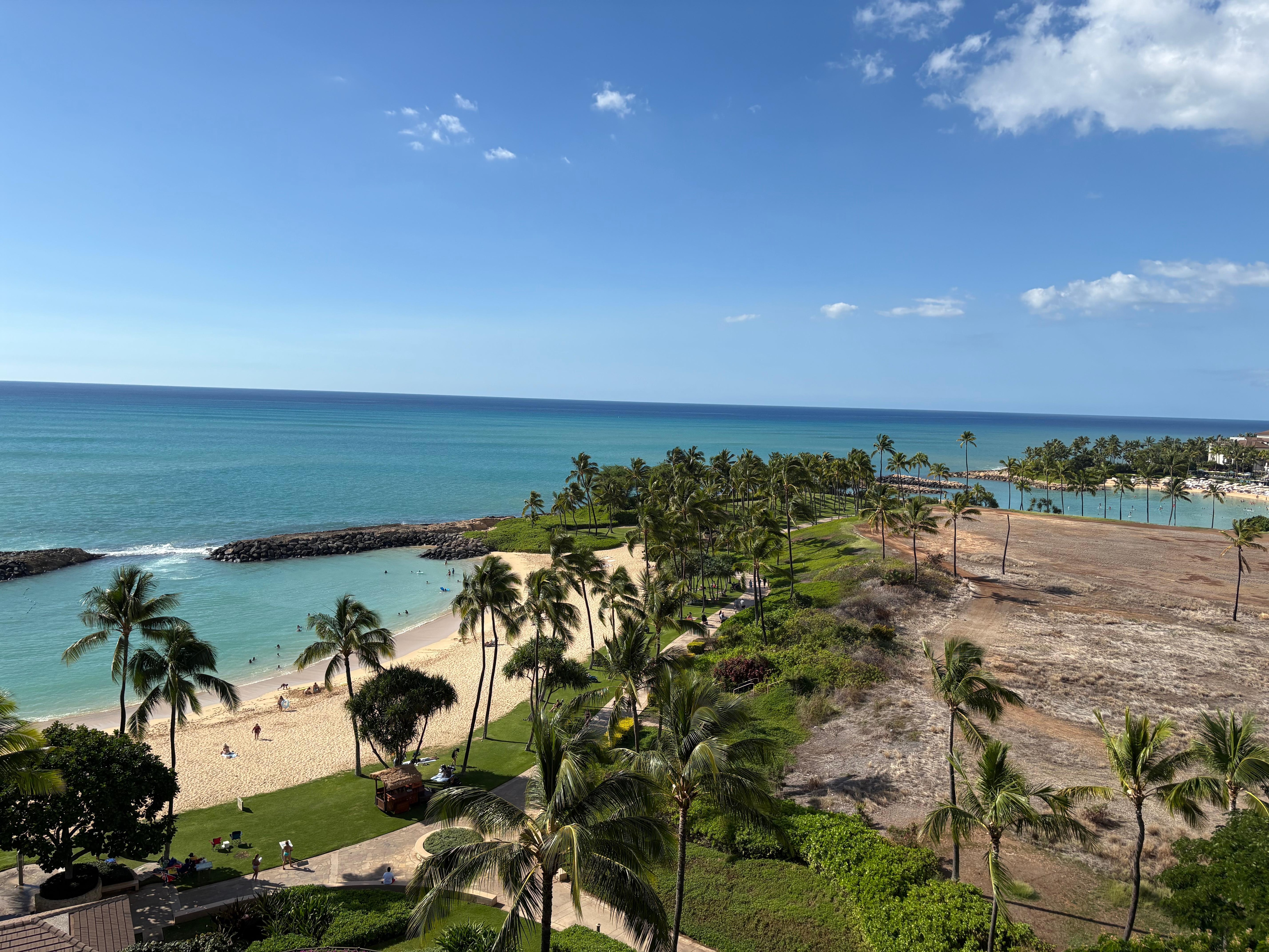 Whether you're unwinding in the steamy spas, frolicking in the blue waters, or taking siestas under shaded palm trees, your days will be filled with both relaxation and adventure. Escape reality and experience exclusive access to the unique Ko Olina lagoons, the vibrant and secluded gem of Hawaii known for their calm waters and good snorkel. Indulge in tropical refreshers and guac at the beachside tiki bar, where plush outdoor couches invite conversation. As tiki torches illuminate the resort at sunset, don't forget to grab a lei and head to the vibrant luaus!