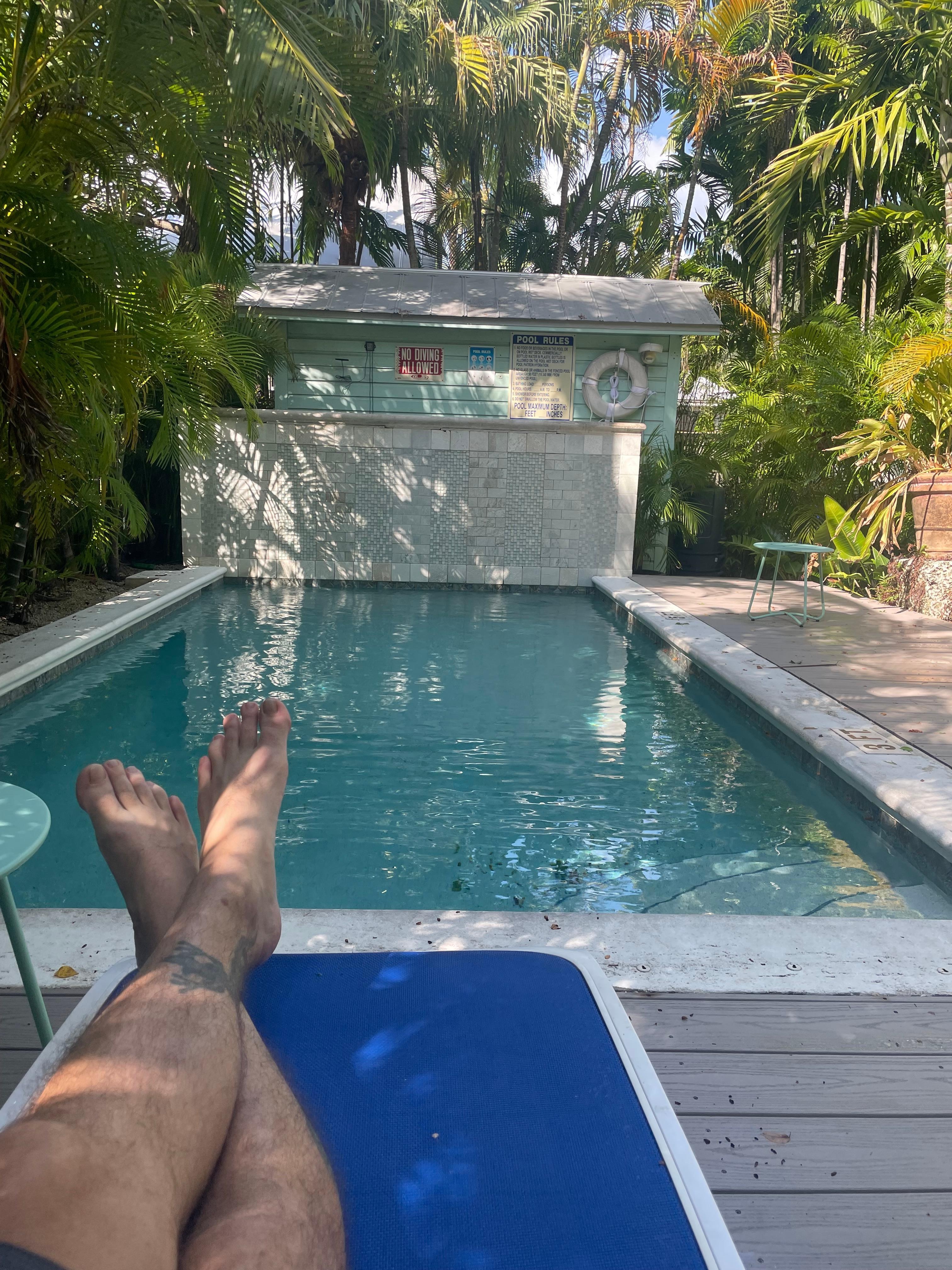 As you enter the home via the main gate, you will find a full kitchen with updated appliances including a refrigerator, microwave, toaster, and coffee maker. *Please note this cottage has no dishwasher. A queen bed with a dresser, smart TV, night stands and bedside lamps allow for a comfortable sleep. The bedroom provides access to your private front porch from which you can enjoy morning coffee and people watching. The tiled bathroom has a pedestal sink and walk-in shower. A hall closet provides storage for your luggage and an instant water heater. Out back is a beautifully refreshing shared pool. Your deck has a grill and an outdoor dining area with a bistro table and chairs. Enjoy the lush landscaping and tropical breezes while napping or reading a book. Work on your suntan poolside or converse with friends and family; the options are limitless. Don’t wait, book your island getaway at Margarita Cottage now!
