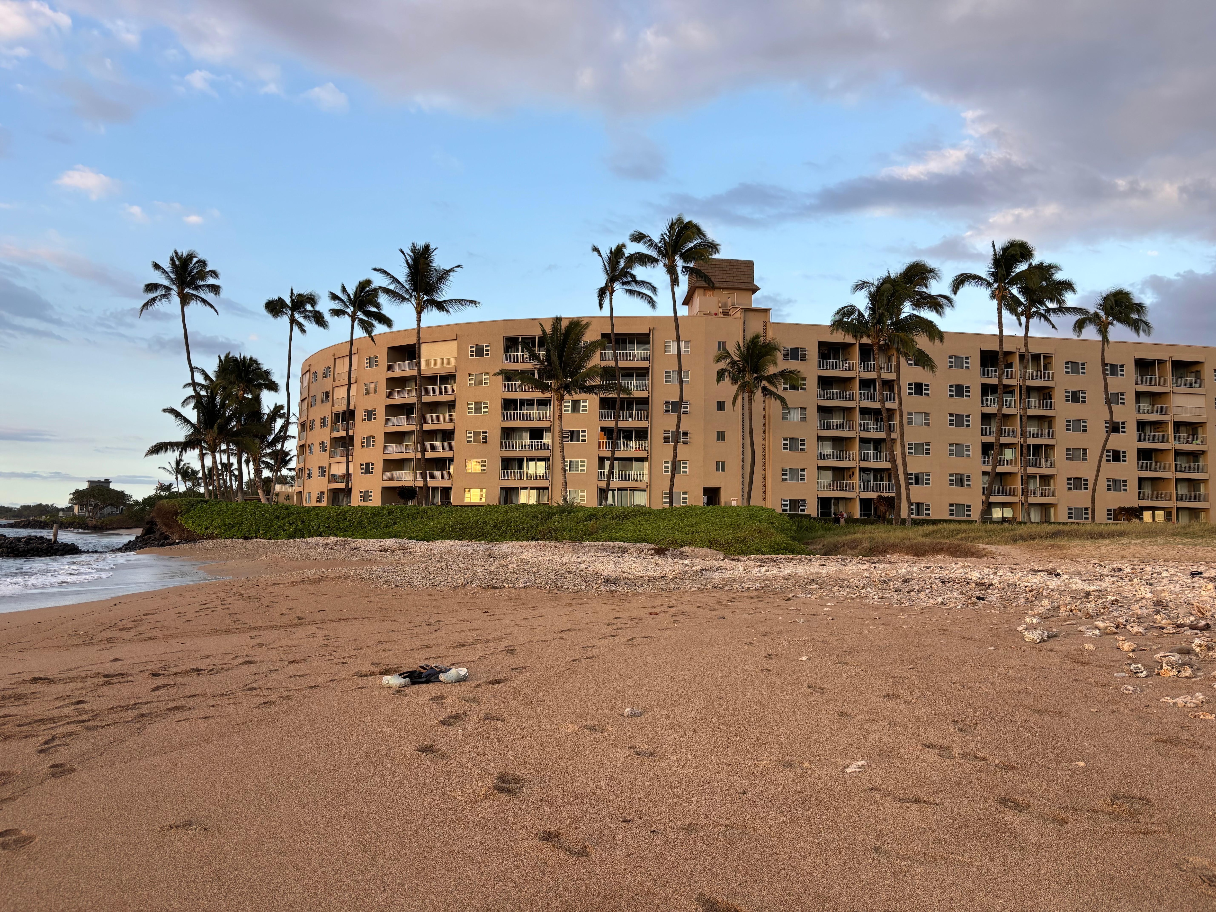 Aloha Kai is on the 5th floor of the building, near an elevator, just left of center which offers the best views of the neighboring islands and Waipuilani Beaches. Unit does not overlook pool and is on the quieter side of the building. The only thing you will hear is the lapping of the waves below.