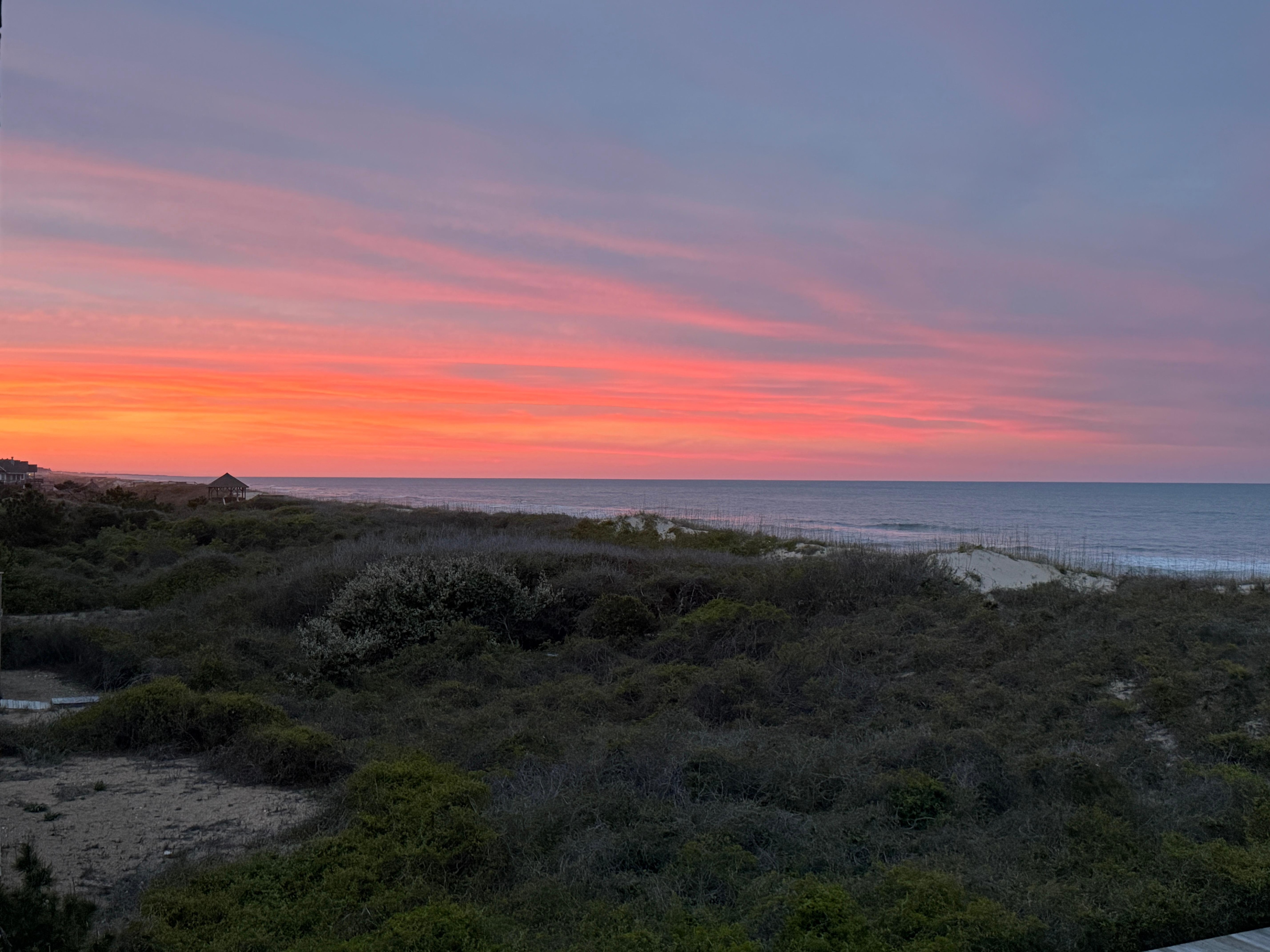 Oceanfront Oasis envelopes two floors of living space and an observation tower at 42 feet above see level where beautiful sunsets are captured.