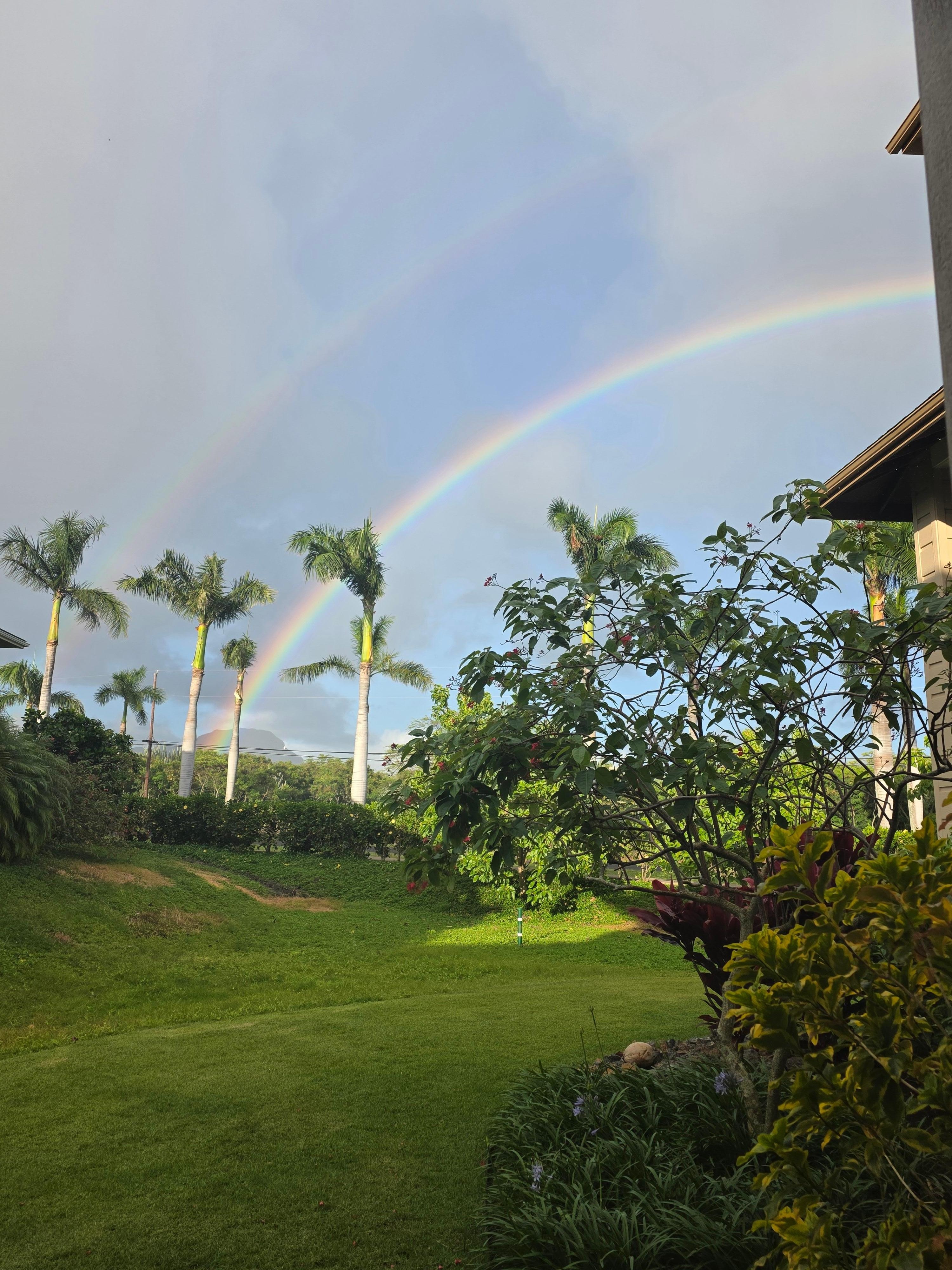 ✨ Feel the gentle Hawaiian breeze on our tranquil lanai, facing east to greet the sun's first rays over the majestic Ha'upu Mountain range. Let the cooling trade winds embrace you in the afternoons.