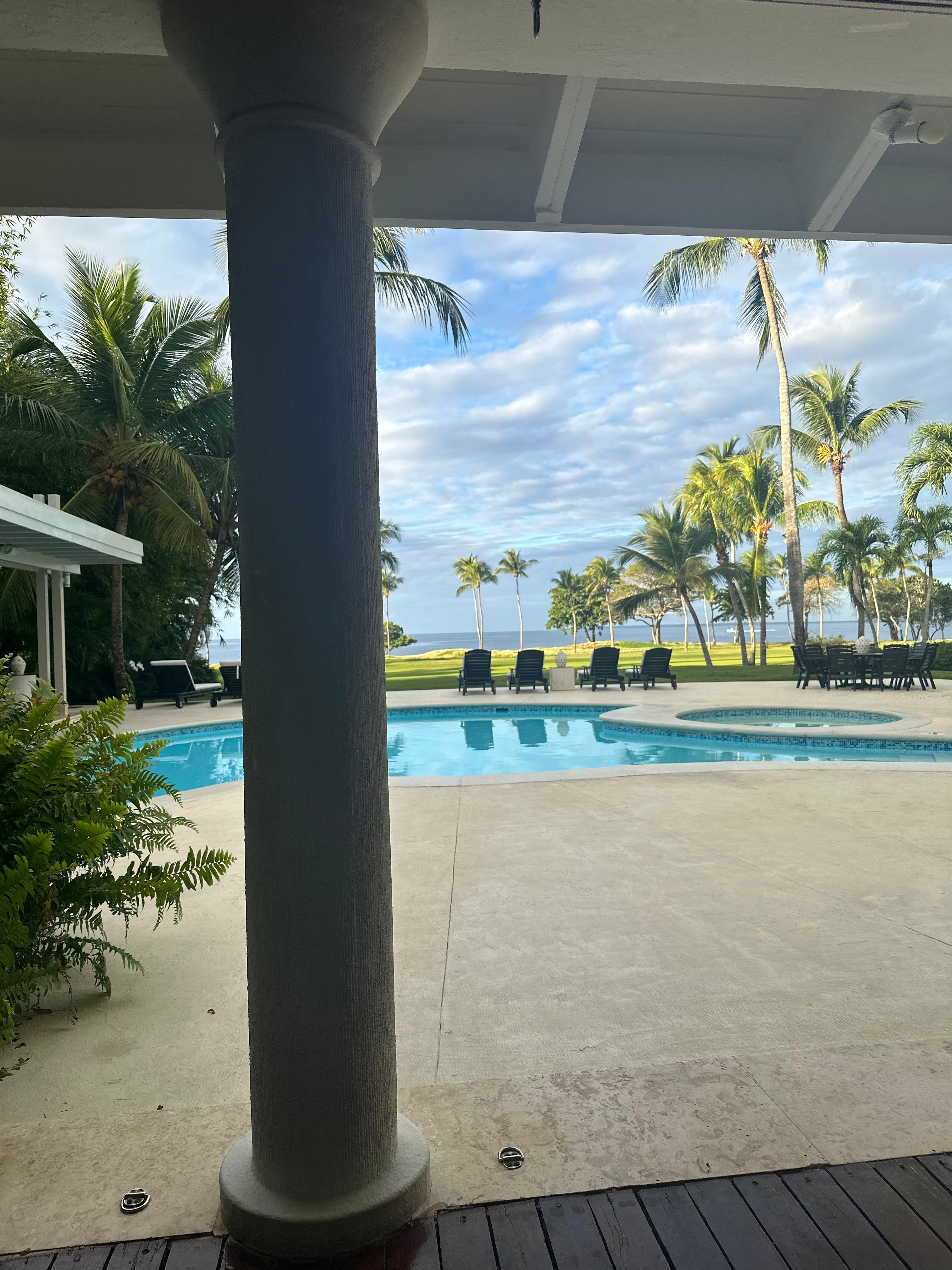 The Villa has six large guest bedrooms and seven and a half baths. All of the bedrooms have air-conditioning. The master suite features an entrance hall, a king-sized bed, walk in closet, large Smart TV, Bose stereo radio, private bath and a balcony with a breathtaking ocean view. All other bedrooms are as spacious as the master bedroom, four have king-sized beds and two have two queen-sized beds. All six have walk-in closets, smart TV, and private bathrooms and other amenities similar to the Master suite. There is an additional twin bed and trundle in one of the largest bedrooms in case of small children wanting to share a room with the adults. Three of the bathrooms in guest rooms are handicapped accessible. We also have one playpen and one crib available for small children.