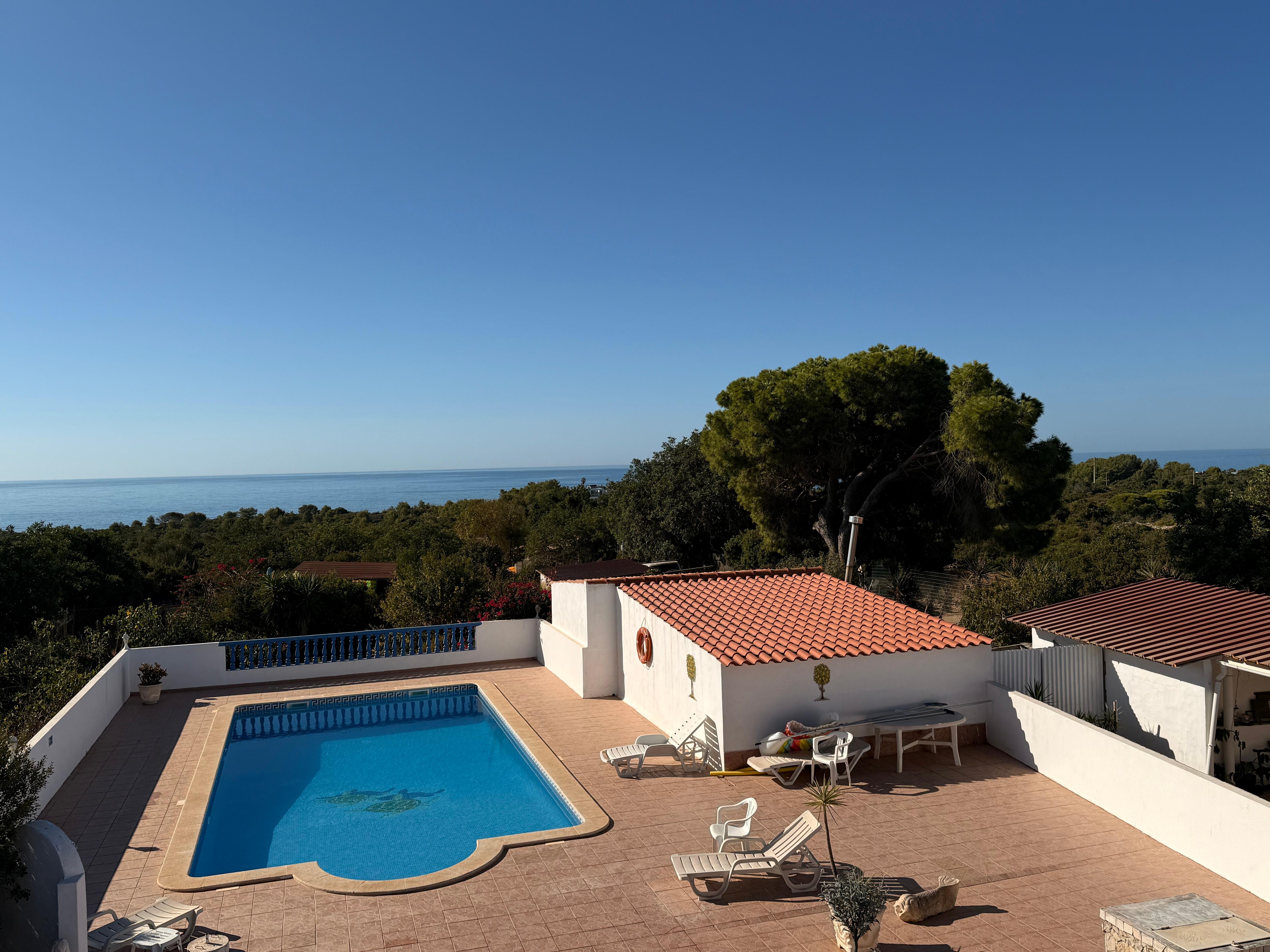 The pool has tiles missing and cracks on the sides. It is NOT clean. When we arrived, it had algae in places around the sides and was a little cloudy. By the time we left, it was so murky you could barely see the bottom. The steps green with algae and there was a diving beetle in it for a while. For the last two days, we didn’t swim in case we got an infection.
