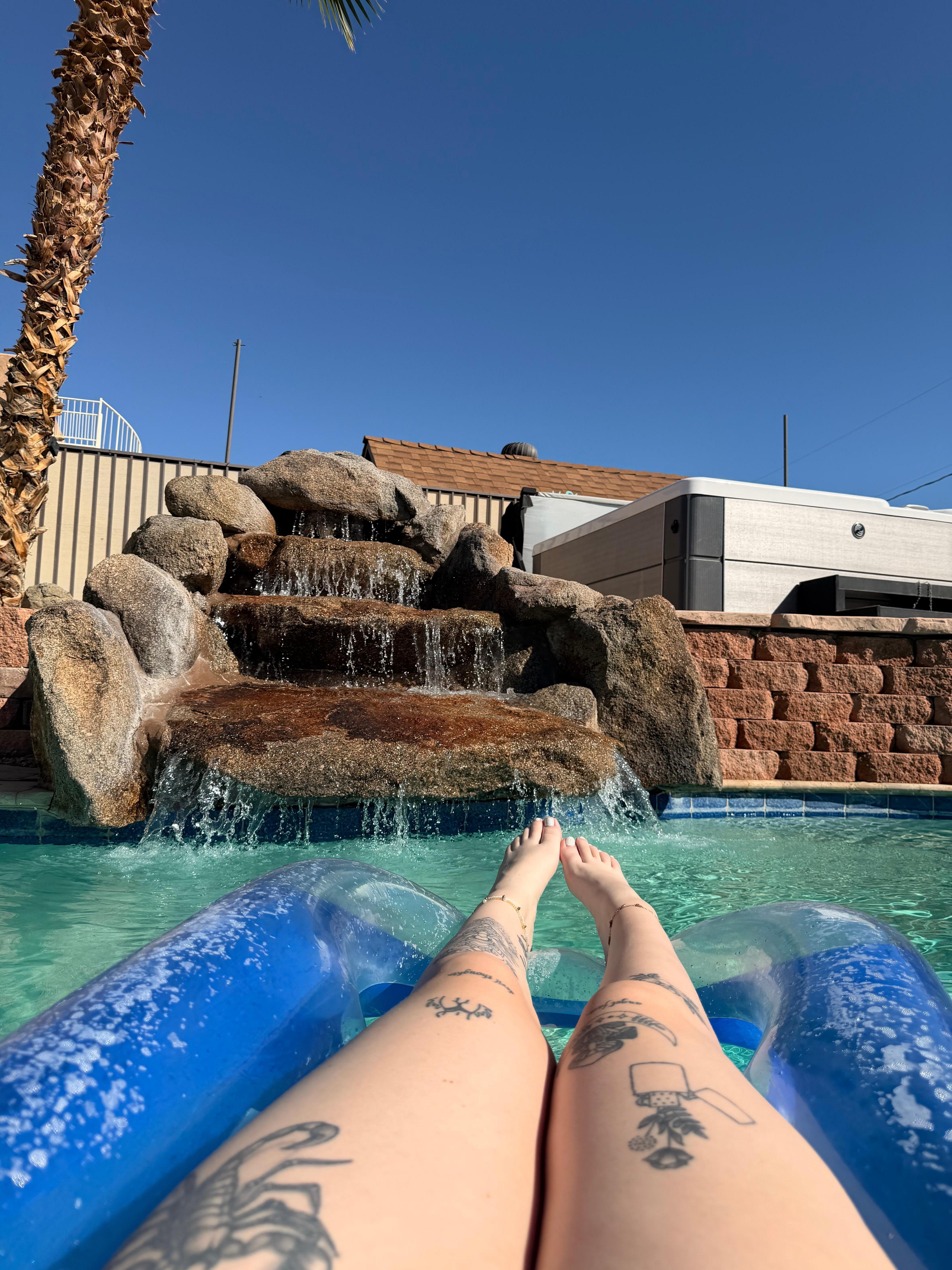 The backyard has a private resort feeling pool and private high end hot tub (additional charge see under section "other details note"). The outdoor bar has a propane gas grill, refrigerator, Smart TV and surround system. TV works with house internet but can glitch if signals are not strong enough. Please ensure appliances are plugged in before contacting manager for assistance. Smoking is only allowed outside of the house. We provide ashtrays at outdoor bar. Please remove all byproducts to trash before checking out.