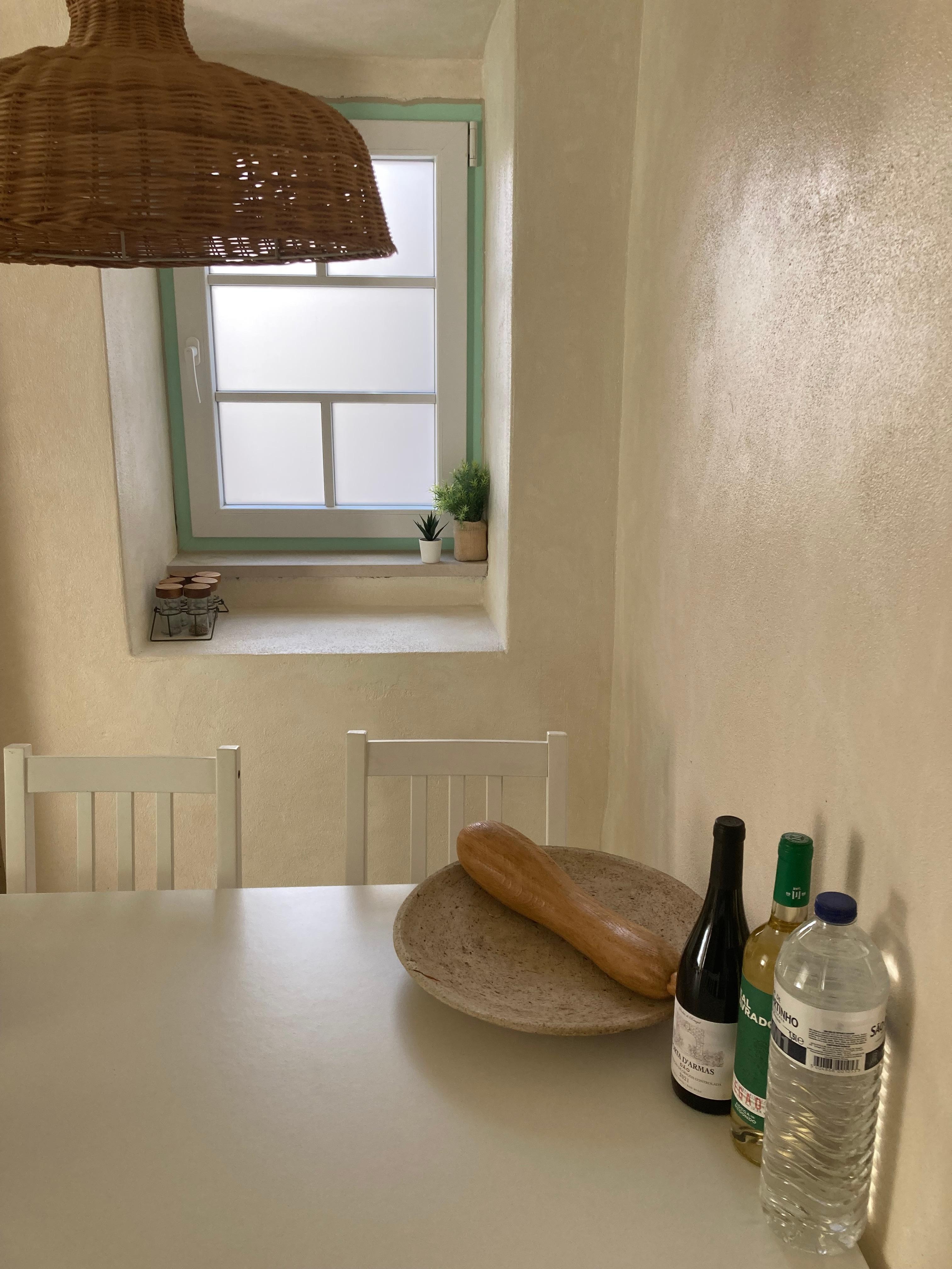 Kitchen with dining area, fully equipped for light meals or more complete meals, and a washing machine
