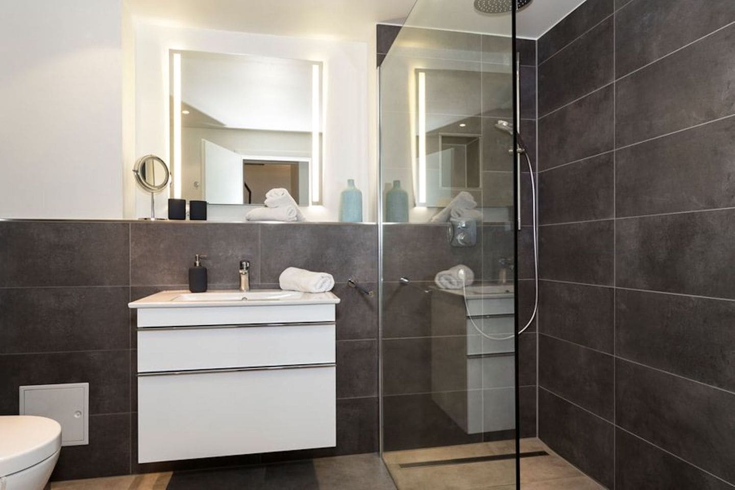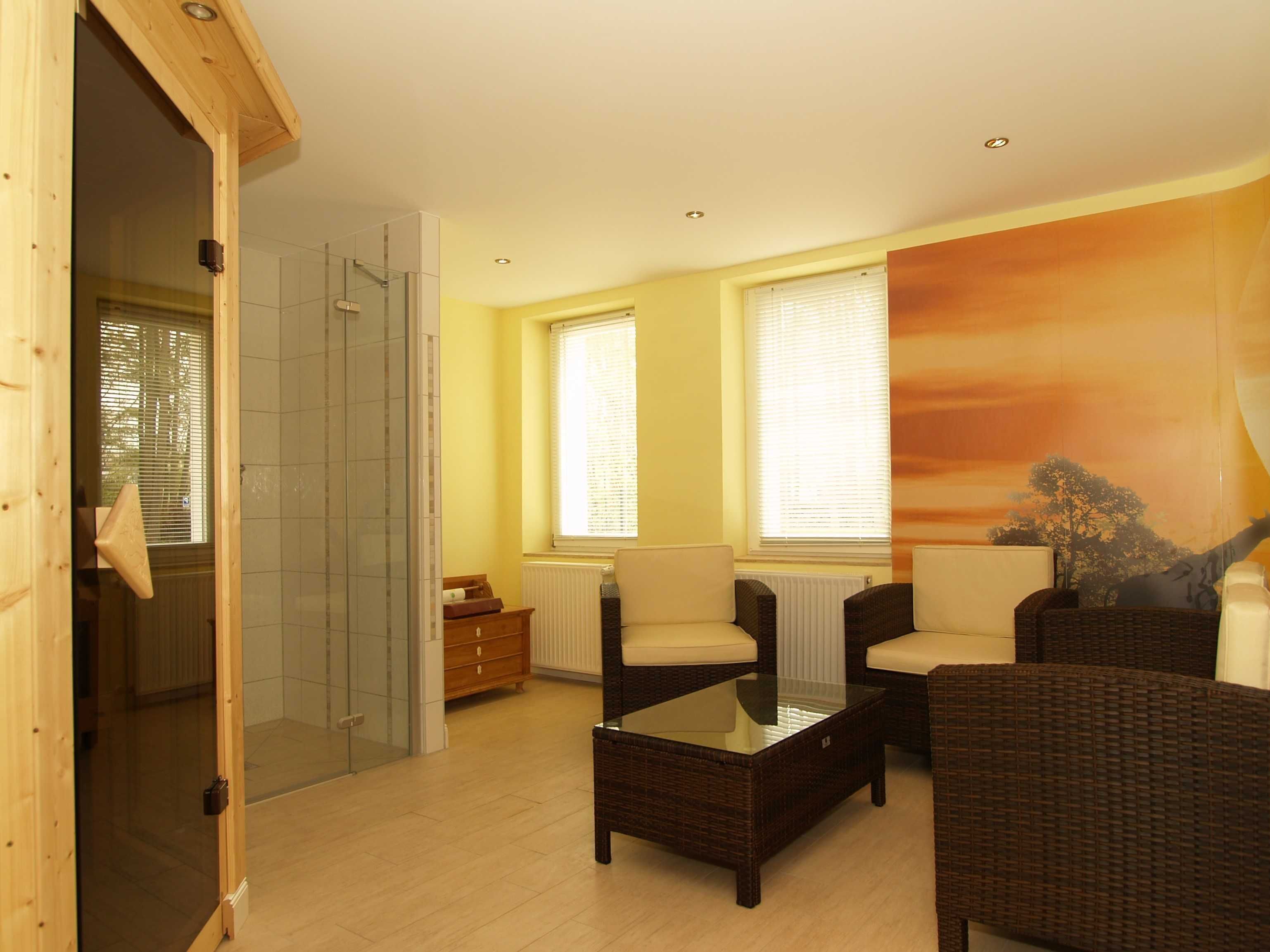 The penthouse is stylishly furnished to a high standard and modern. A special highlight is the bathroom, your personal small wellness area with sauna, whirlpool and steam bath with integrated double rain shower. This bathroom can be accessed through the second bedroom. The feel-good programme continues in the living area, as the flickering flames of the fireplace bathe the room in a particularly cosy light. The sofa can be converted into two comfortable sleeping areas in a few simple steps.